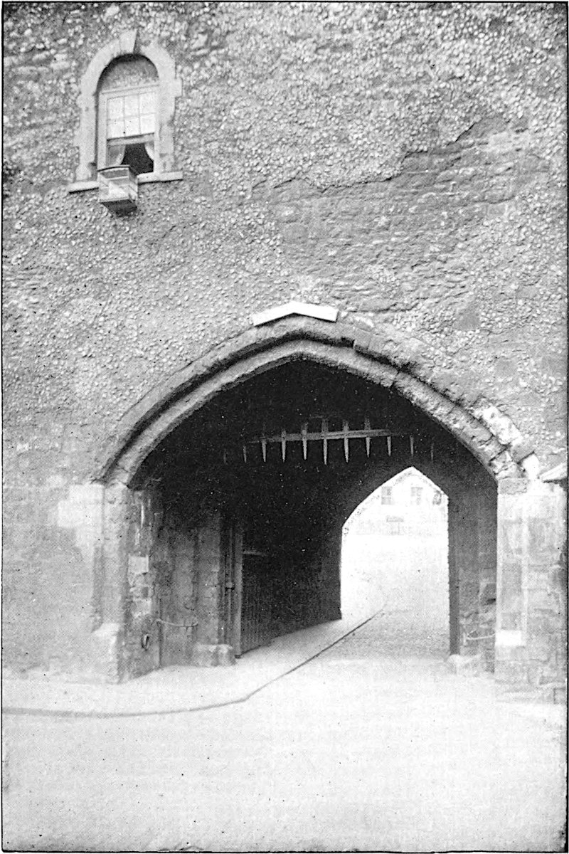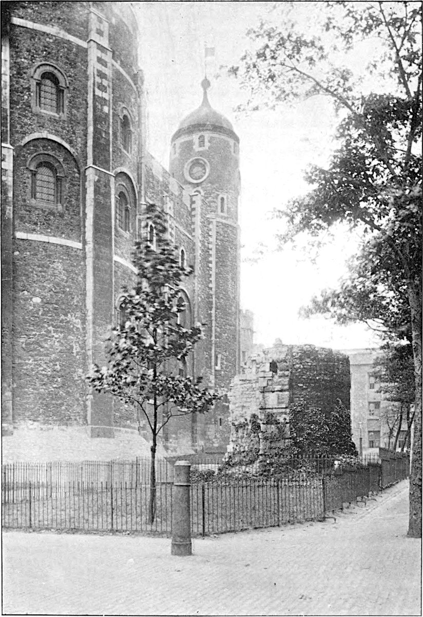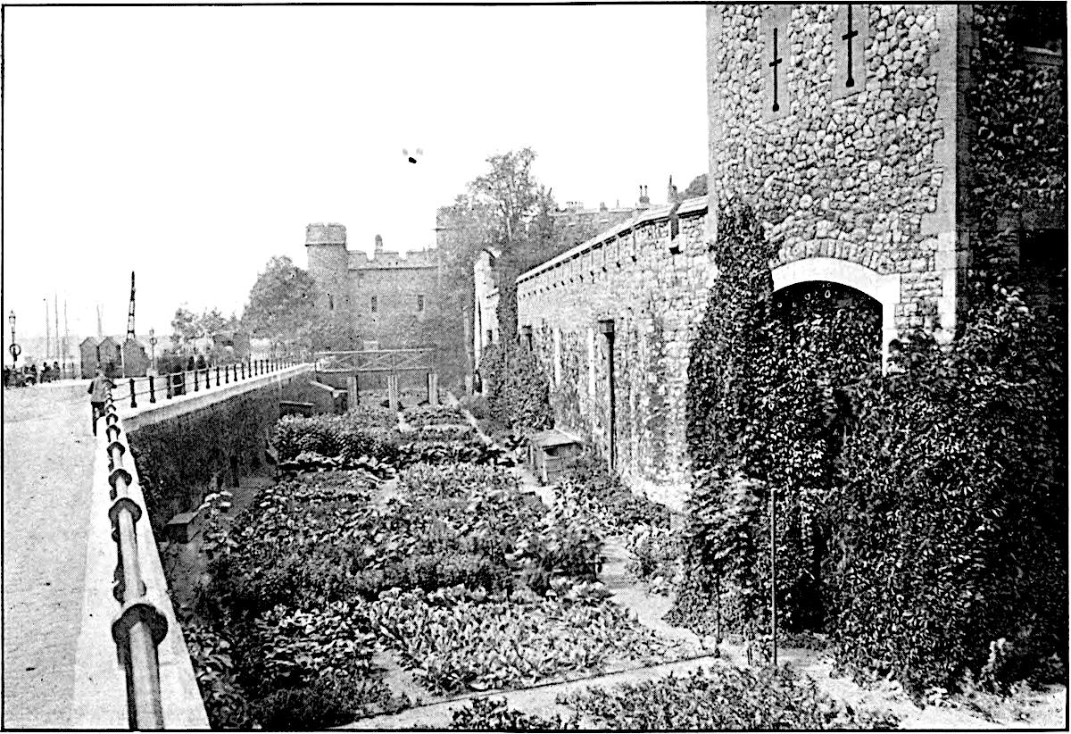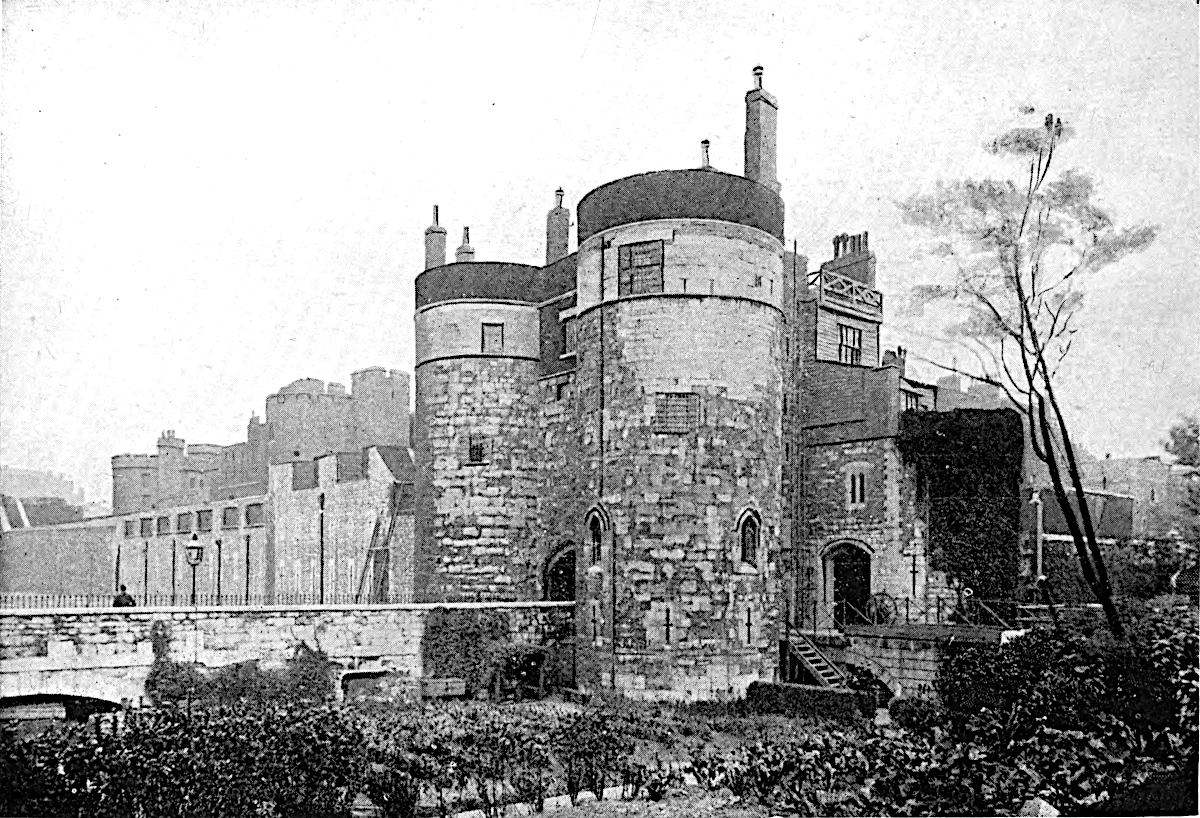 For the next twelve years the Tower was Raleigh’s home, and not till he had succeeded in bribing King James’s favourite, George Villiers, Duke of Buckingham, by the payment of a large sum of money, did he again obtain his liberty. Before settling down in the Tower, and while the plague was still raging, Raleigh, with his wife and son, were taken to the Fleet Prison on several occasions. At length they were placed in the not uncomfortable rooms in the Bloody Tower, which he, with his family and servants, must have quite filled, for besides Lady Raleigh and her son Carew, there were two servants named Dean and Talbot, and a boy, who was probably a son of Talbot’s. Their imprisonment was not absolutely rigid, for they were allowed the visits of a clergyman named Hawthorne, a doctor, Turner, and a surgeon, Dr John, as well as those of Sir Walter’s agent, who came up from Raleigh’s place, Sherborn, so that he was kept in touch with his affairs; one or two other friends were also admitted. In addition to these privileges Sir Walter was allowed the run—the liberty as it would be called then—of the Lieutenant of the Tower’s garden, which lay at the foot of the Bloody Tower, as has already been mentioned in the description of that place.