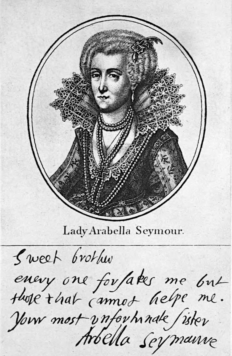 William Seymour survived Arabella for nearly half-a-century; he married again, his second wife being a sister of the Parliamentary general, the Earl of Essex, the son of Elizabeth’s favourite and victim. In 1660 Seymour became Duke of Somerset, and lived just long enough to welcome Charles II. He had shown far more loyalty to Charles I. than he had done to poor Arabella Stuart.