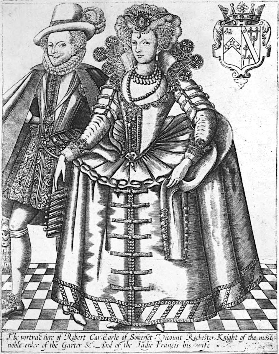 Macaulay has compared the court of James the First to that of Nero; it would have been more correct to have likened it to that of the Valois, Henry III. Although it was never proved, there were strong suspicions that the somewhat sudden death of Henry, Prince of Wales, was brought about by poison, and there is no doubt that poison was made use of by James’s courtiers, as the death of Overbury proves. Sir Thomas Overbury was the confidant of the King’s worthless favourite, Robert Carr, a handsome youth who had been brought by James from Scotland in his train, and whom he had knighted in 1607. James had also given Raleigh’s confiscated estates to his favourite two years after making him a knight, and in 1614 created him Lord Rochester and Earl of Somerset, as well as Lord Chamberlain. Overbury belonged to a Gloucestershire family, and had travelled on the Continent, whence he returned what was then called “a finished gentleman.” Overbury and Carr were firm friends, and it was probably on the recommendation of the latter that James knighted Overbury in 1608. When, however, Somerset determined to marry the notoriously improper Lady Frances Howard, the daughter of the Earl of Suffolk, and the girl-wife of Lord Essex, from whom she was separated, Overbury most strongly persuaded his friend from committing such a rash action. His attitude coming to the knowledge of Lady Frances, she vowed to avenge herself upon Sir Thomas, and carried her threat to its bitter execution. On some frivolous pretext Overbury was sent to the Tower; Lady Somerset, as Lady Frances had become, notwithstanding Overbury’s advice, now determined to rid herself of the man she mostly feared. With the help of a notorious quack, and of a procuress, Mrs Turner, with whom she had been brought up, she set about the task of consummating her revenge. Poison was supplied by Mrs Turner, with which the unfortunate Overbury was slowly killed; but as the drug—it is believed to have been corrosive sublimate—did not act sufficiently quickly, two hired assassins, named Franklin and Lobell, were called in, and stifled the victim with a pillow. Sir William Waad at this time had ceased to be the Lieutenant, through Lady Essex’s influence, and had been succeeded by Sir Gervase Elwes, a creature of Somerset’s, who was not only cognisant of Overbury’s18 death in the Bloody Tower, where he was confined, but even aided Lady Somerset in her crime. Mrs Turner was the inventor of a peculiar yellow starch which was used for stiffening the ruffs worn at that time; she wore one of these ruffs when she was sentenced to die for her participation in this murder by the Chief-Justice, Sir Edward Coke, and was also hanged in it at Tyburn in March 1615, with the natural consequence that yellow starched ruffs suddenly ceased to be the fashion. Lady Somerset was also tried, and although found guilty of Overbury’s murder, received a pardon from the King, but she and her husband, Somerset, spent six years as prisoners in the Tower, where they occupied the same rooms in the Bloody Tower which shortly before had been tenanted by the wife’s victim. Sir Thomas Overbury was buried in St Peter’s Chapel, his grave lying next to that of Robert Devereux, Earl of Essex.
