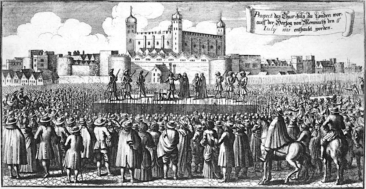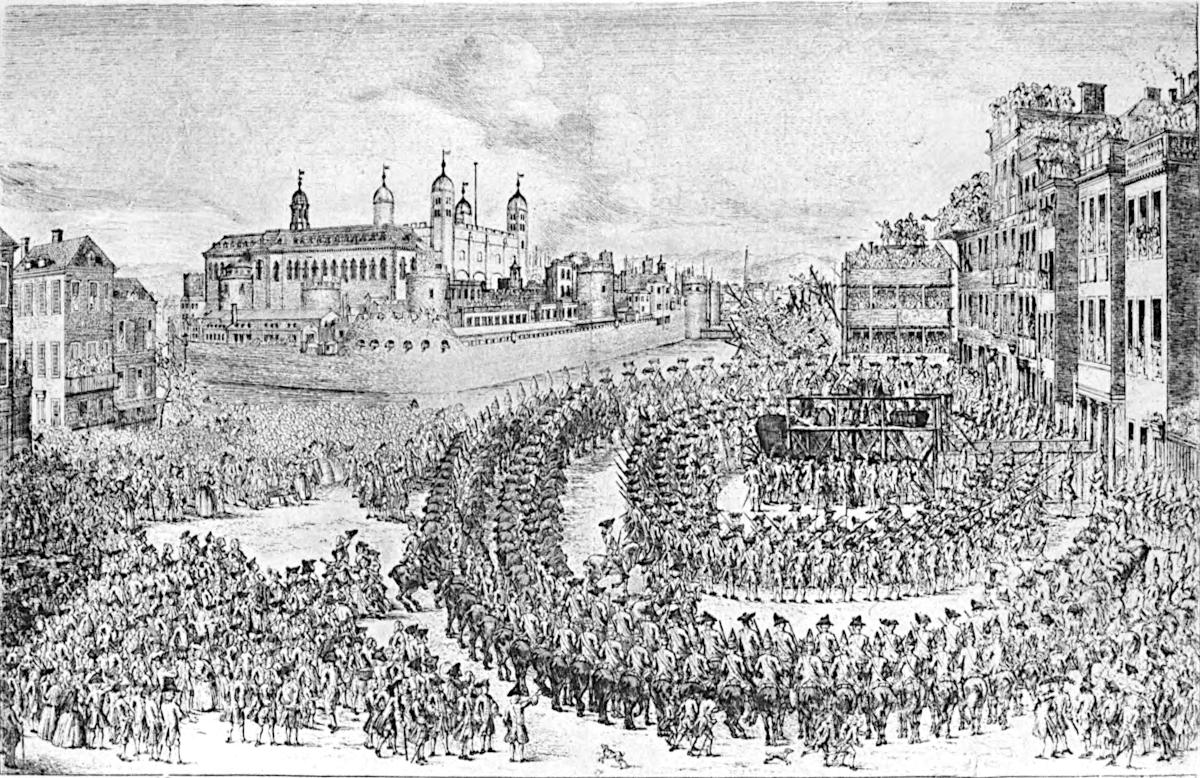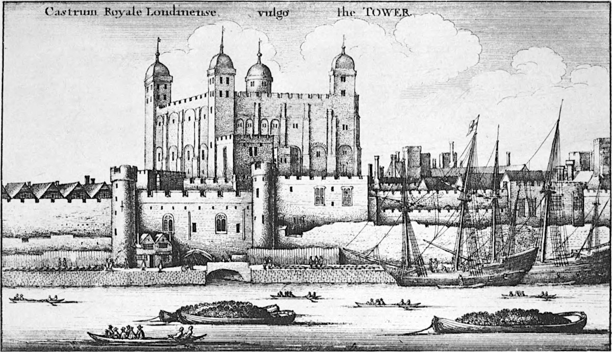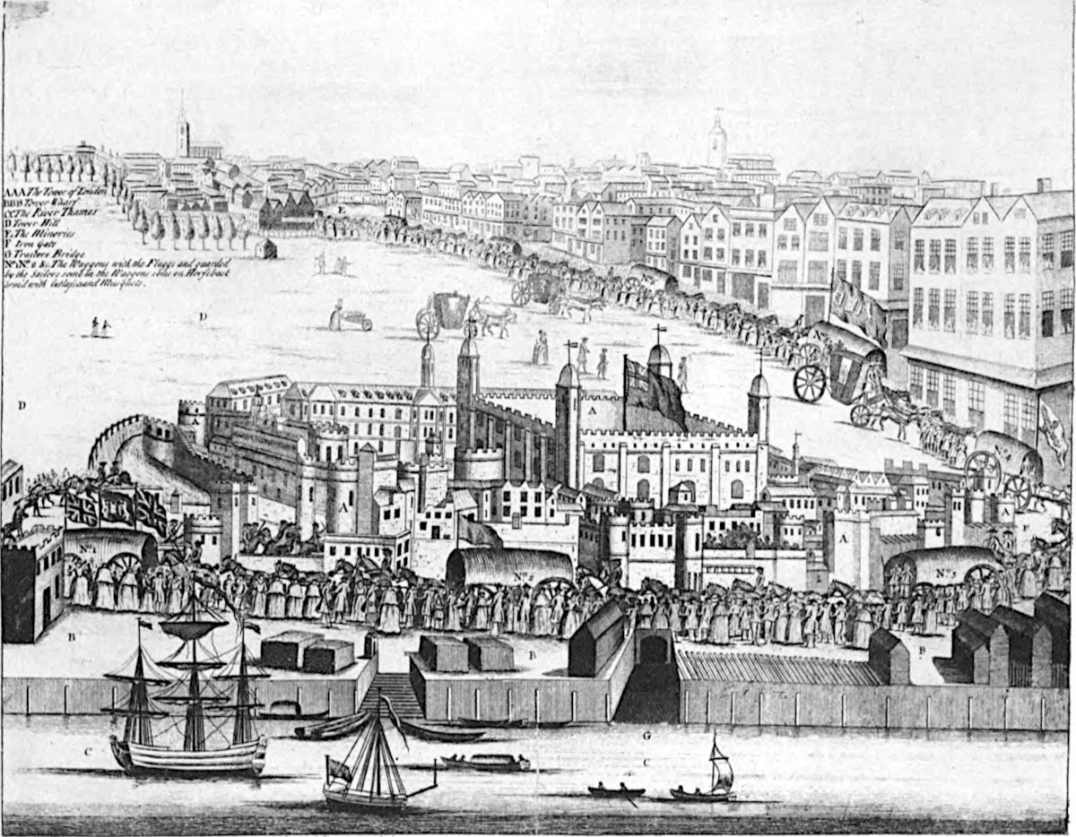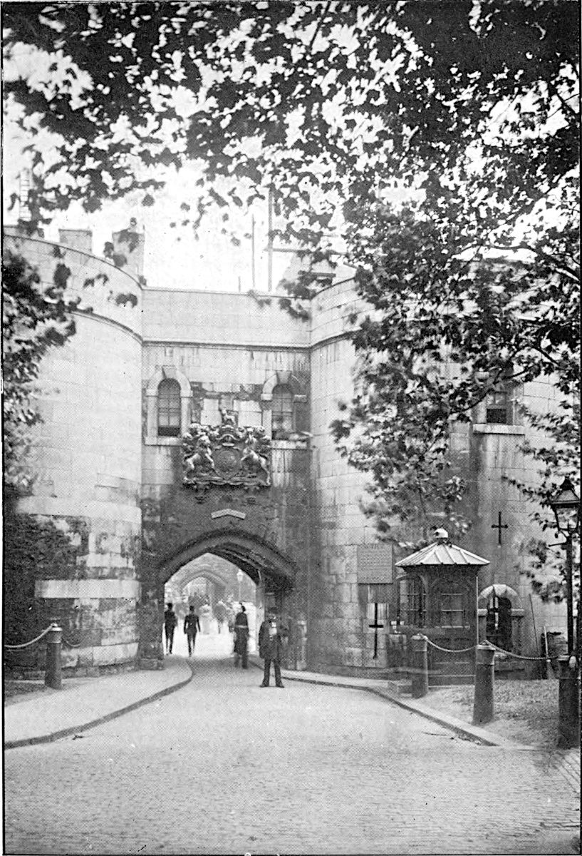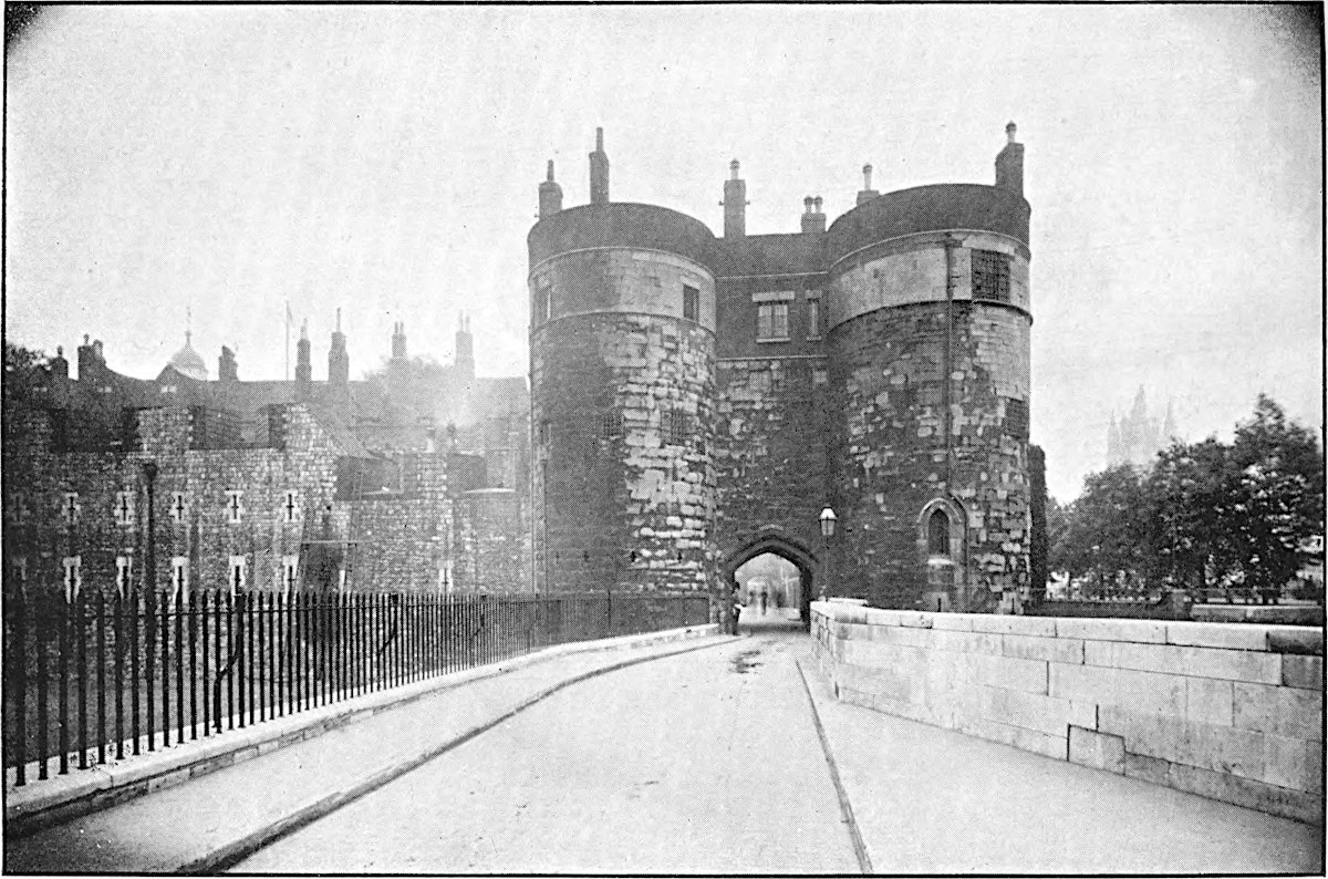 Owing to the plague then raging in London, the customary procession at the coronation was omitted, although the King rode in state from the Tower to Westminster, preparatory to the opening of his first Parliament on 15th of March 1605, as the Londoners had made their welcome for him ready. In Mr Sidney Lee’s “Life of Shakespeare,” he states that Shakespeare, with eight other players of the King’s company of actors, “walked from the Tower of London to Westminster in the procession which accompanied the King in his formal entry into London. Each actor received four and a half yards of scarlet cloth to wear as a cloak on the occasion, and in the document authorising the grant, Shakespeare’s name stands first on the list.” This is the only time that we can positively know that Shakespeare was ever at the Tower; but his frequent introduction of the fortress into his historical dramas makes it certain that he must often have visited a place so full of dramatic episodes and historical memories.[2]