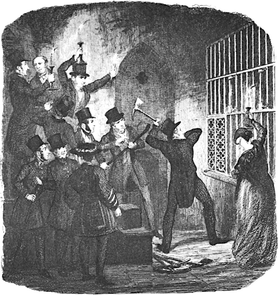 Guy Fawkes and most of his fellow-prisoners while in the Tower had been placed in the subterranean dungeons beneath the White Tower. Fawkes, besides being tortured by the rack, was placed in “Little Ease,” in which horrible hole he is supposed to have been kept for fifty days. Father Oldcorn was imprisoned in the lower room of the Bloody Tower, whilst Father Fisher was in the White Tower; Northumberland, the “Wizard Earl,” as he was called on account of his leaning towards chemical experiments, was lodged in the Martin Tower.