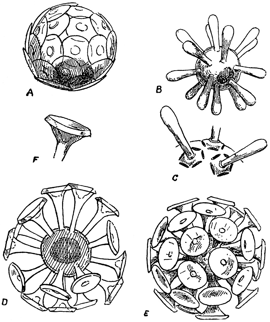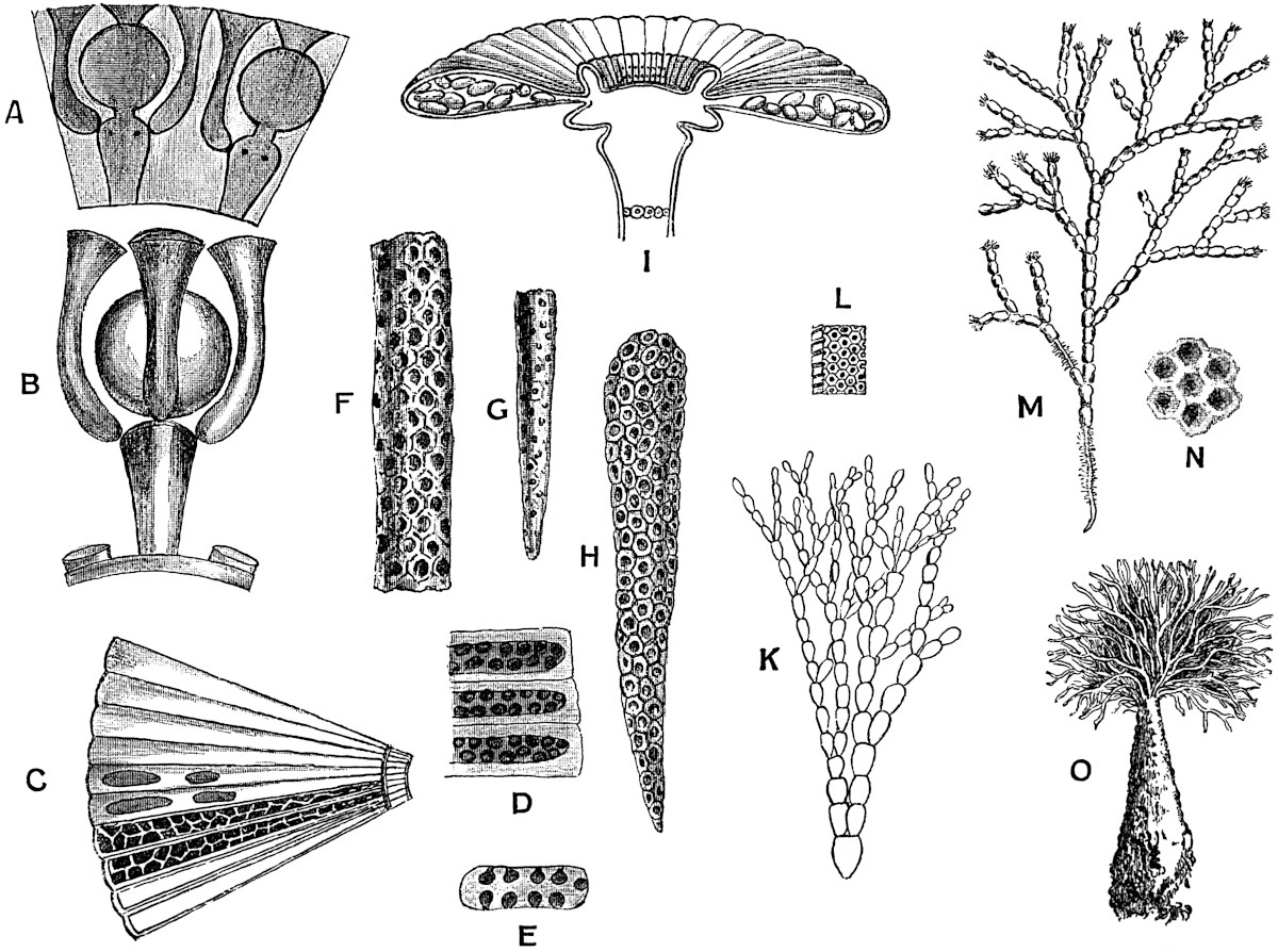 | Acetabularia 165–166. Acicularia 166–169. Cymopolia 169–171. Vermiporella 172–173. Sycidium 173. Diplopora 174–175. Gyroporella 175. Dactylopora, Palaeozoic and Mesozoic Siphoneae 175–177. | ||