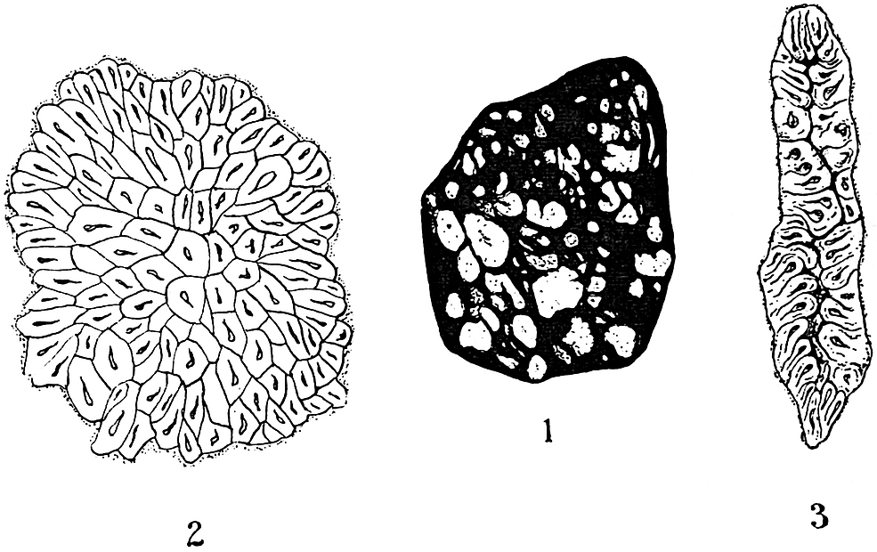 | Girvanella 124–126. Borings in shells 127–129. Zonatrichites 129–130. | ||