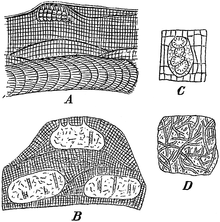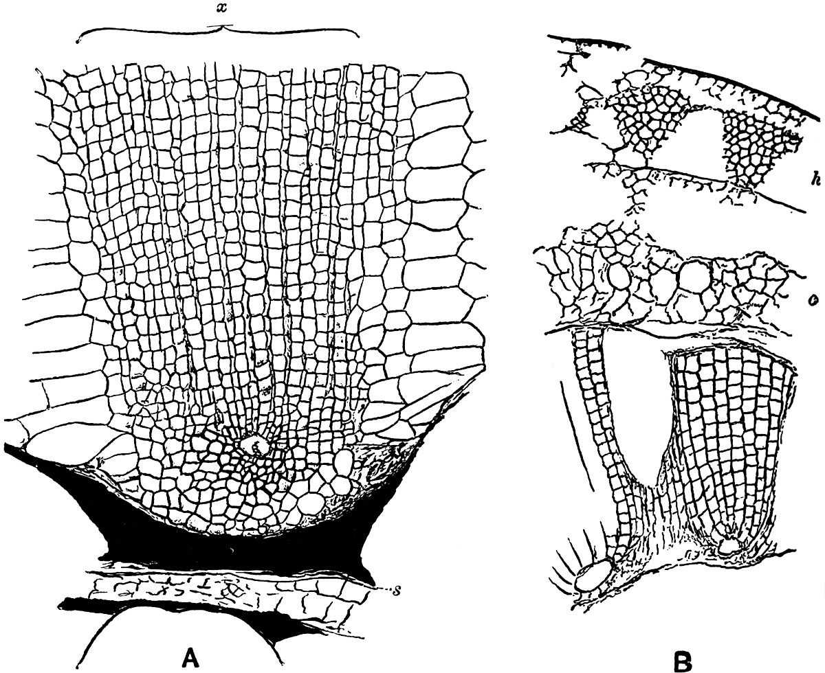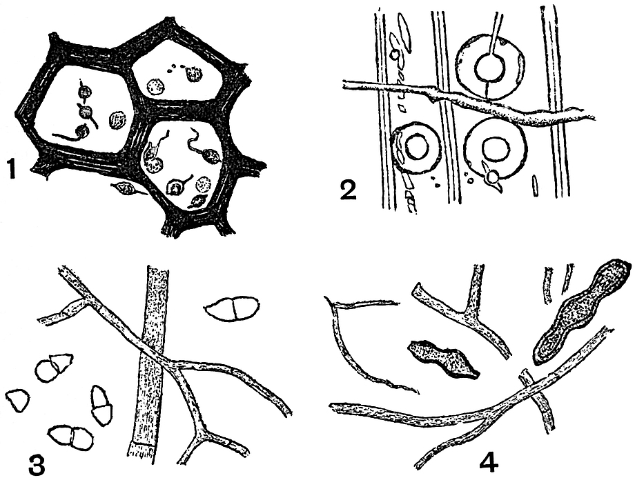 | Pathology of fossil tissues. Oochytrium Lepidodendri 216–217. Peronosporites antiquarius 217–220. Cladosporites bipartitus 220. Haplographites cateniger 220. Zygosporites 220–221. Polyporus vaporarius 221. | ||