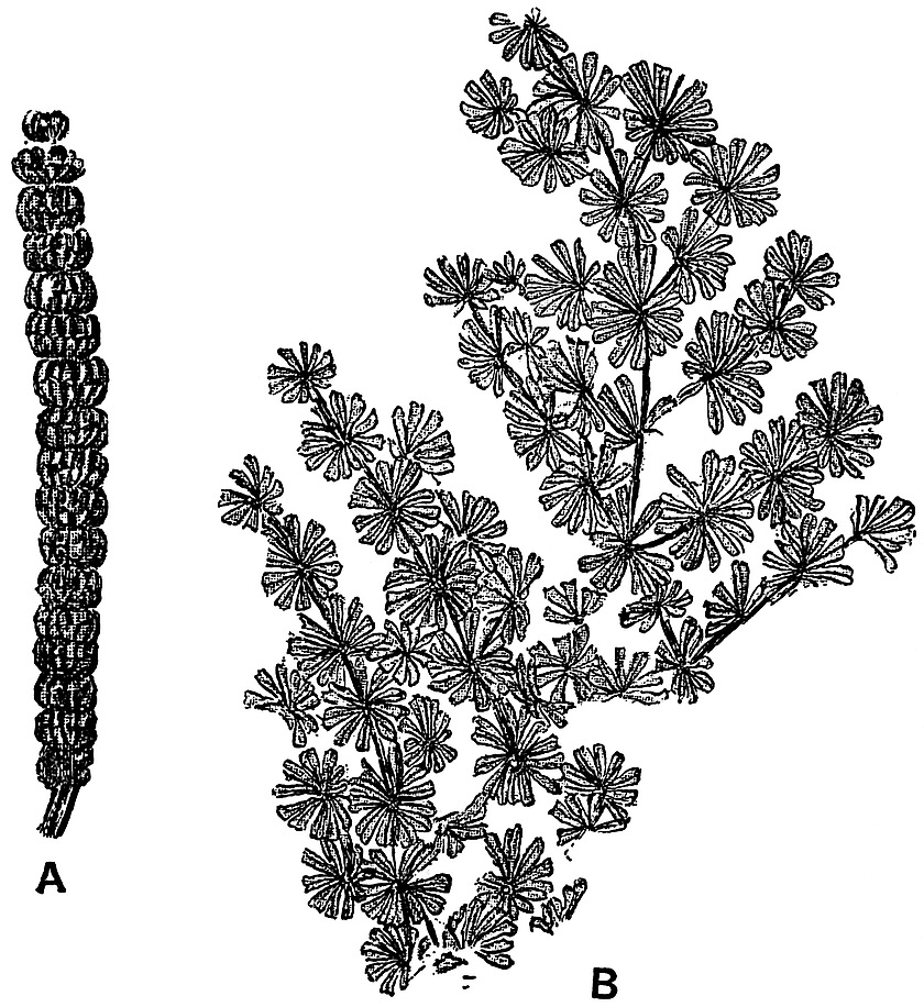 | Muscites 238–241. M. polytrichaceus 239–240. Palaeozoic Mosses. Muscites ferrugineus 241. | ||