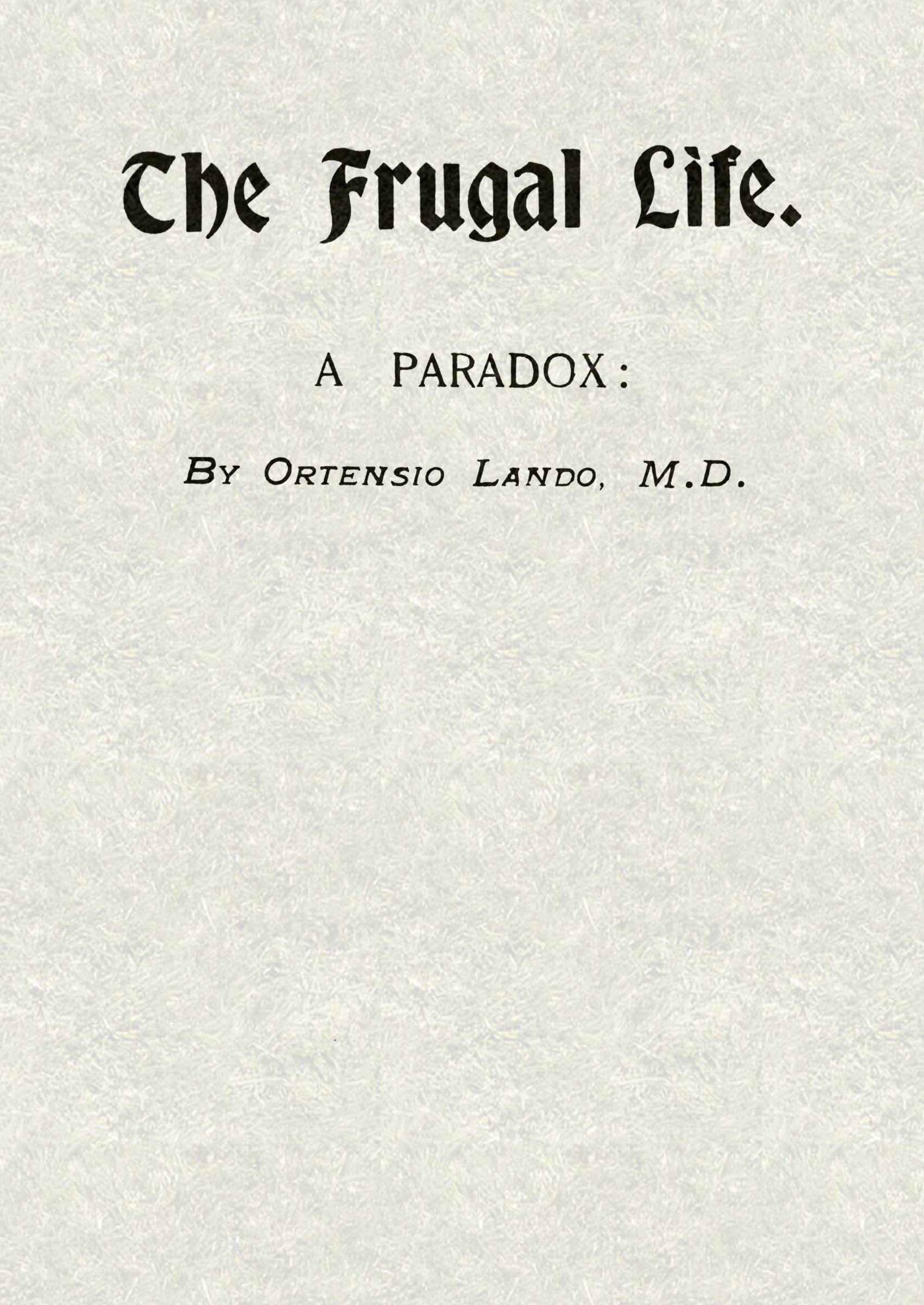 *** START OF THE PROJECT GUTENBERG EBOOK THE FRUGAL LIFE ***
