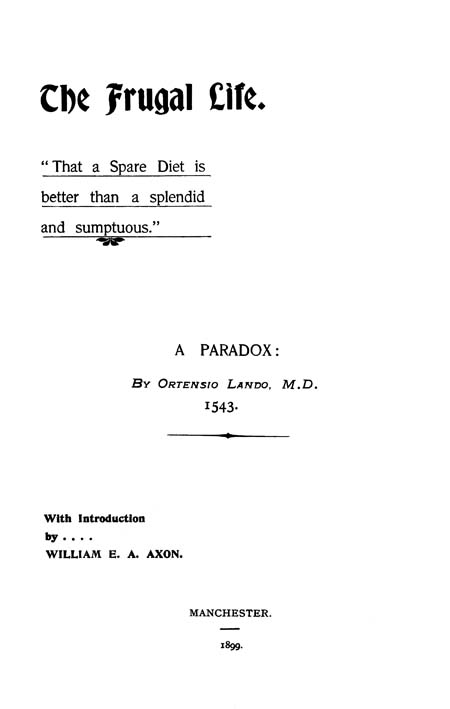 The Project Gutenberg eBook of The Frugal Life, by Ortensio Lando