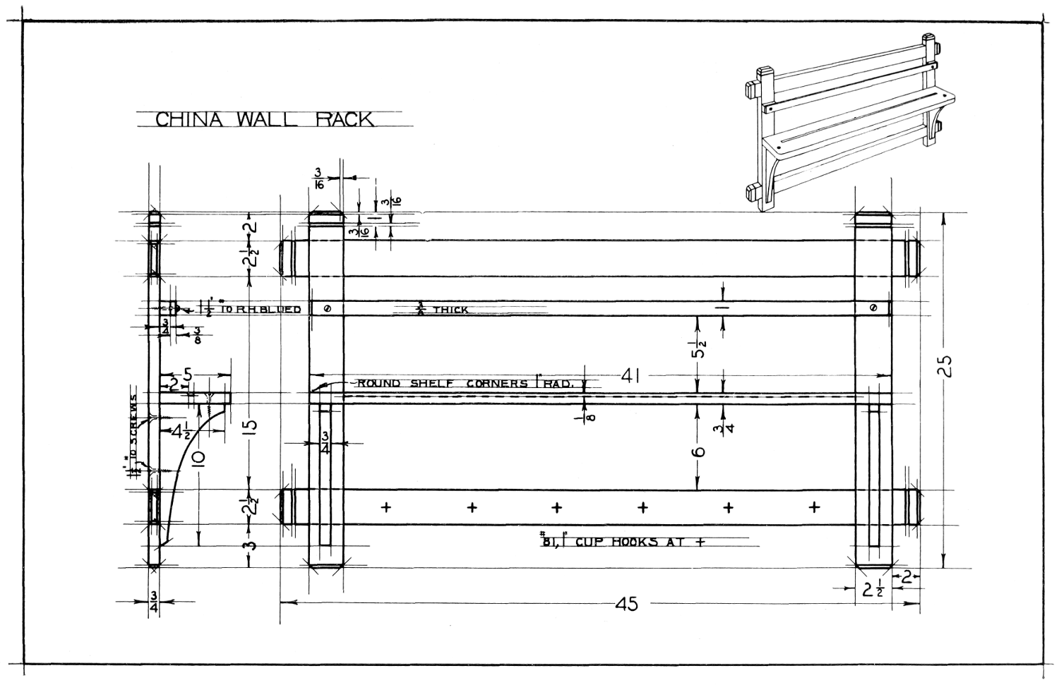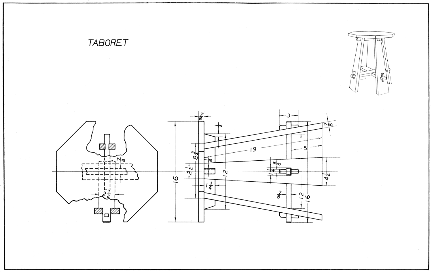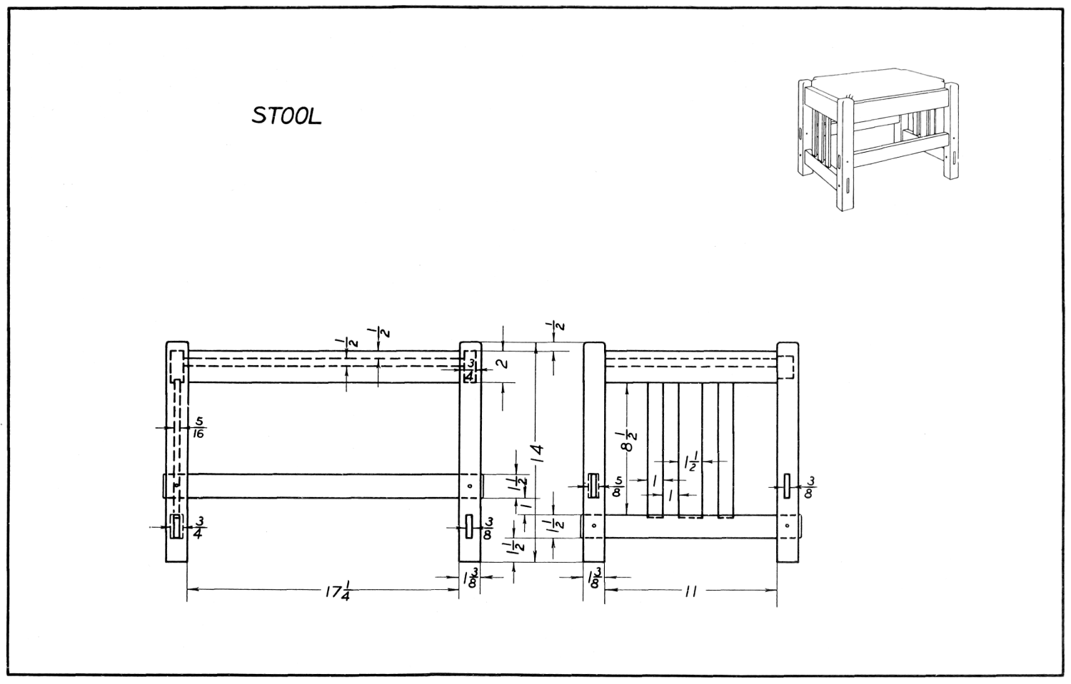 For the convenience of the teachers, the drawings used in “Projects for Beginning Woodwork and Mechanical Drawing” and “Advance Projects in Woodwork” are printed in this book. The notes and working directions, however, are not included. The inking of the drawings and the making of the perspectives in both of these books is the work of Mr. George Gordon Kellar.