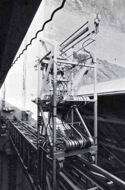 The core can be positioned by remote control anywhere within the range of travel of the transporter. Vertical travel is limited to about 44 feet above the Reactor Building floor level. Horizontal travel is limited by the range of the rails on which the transporter travels. Six pairs of rails extend radially from a turntable in the center of the Reactor Building. These rails terminate within the Reactor Building, except for one pair which extends 90 feet outside the building to an outdoor test site. Each pair of rails defines one experimental location where semi-permanent equipment and shielding can be set up without tying up the entire reactor operation.