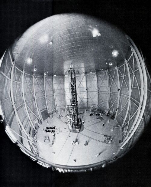 Inside, the building is 100 feet in diameter and 65 feet high. There