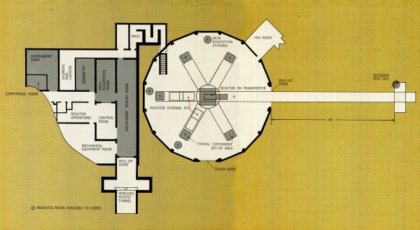 is a roll-up door in the south wall for the passage of the reactor