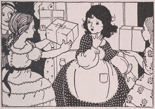 Grandma, seeing them edge reluctantly toward the head of the stairs, said cheerfully, as she bustled about unpacking the great box that held her “things,” “Never mind, dears. Run out and play now, and tonight we’ll have a regular housewarming. Come to my[10] room at seven o’clock and we will have a little party.”