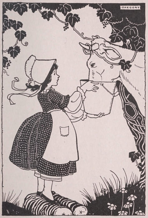 “And the cats! You never saw such cats, they were so fat and round and sleek. No[14] wonder, for they had milk twice a day out of a hollow rock that stood by the barnyard gate.