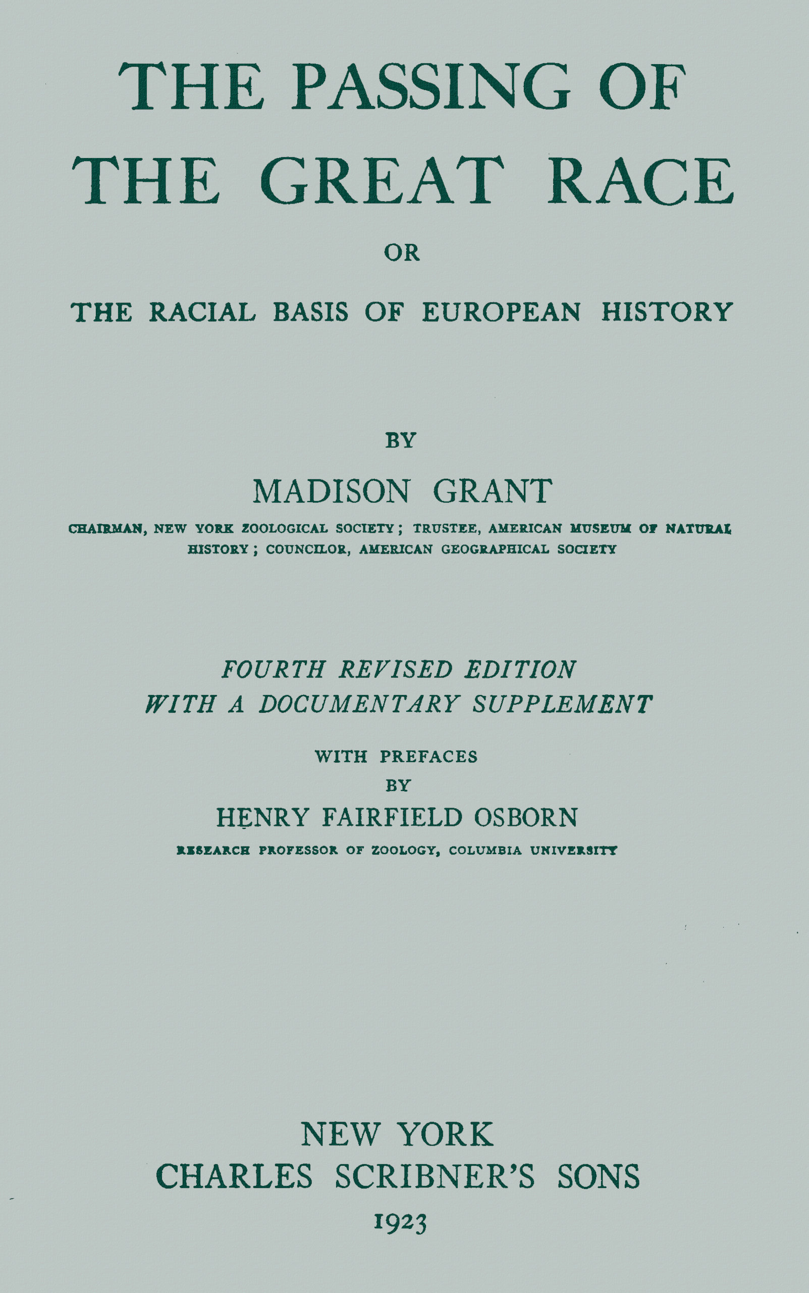 xxviii“The Passing of the Great Race,” in its original form, was designed by the author to rouse his fellow-Americans to the overwhelming importance of race and to the folly of the “Melting Pot” theory, even at the expense of bitter controversy. This purpose has been accomplished thoroughly, and one of the most far-reaching effects of the doctrines enunciated in this volume and in the discussions that followed its publication was the decision of the Congress of the United States to adopt discriminatory and restrictive measures against the immigration of undesirable races and peoples.
