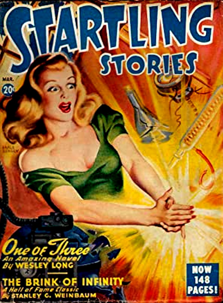 “Well, I got my brain scrambled, in a way. I’ve been fooling around with supersonic detergents, trying to work out something marketable, you know. The gadget went wrong—from some standpoints. High-frequency waves, it was. They went through and through me. Should have been inaudible, but I could hear them, or rather—well, actually I could see them. That’s what I mean about my brain being scrambled. And after that, I could see and hear the Martians. They’ve geared themselves so they work efficiently on ordinary brains, and mine isn’t ordinary any more. They can’t hypnotize me, either. They can command me, but I needn’t obey—now. I hope they don’t suspect. Maybe they do. Yes, I guess they do.”