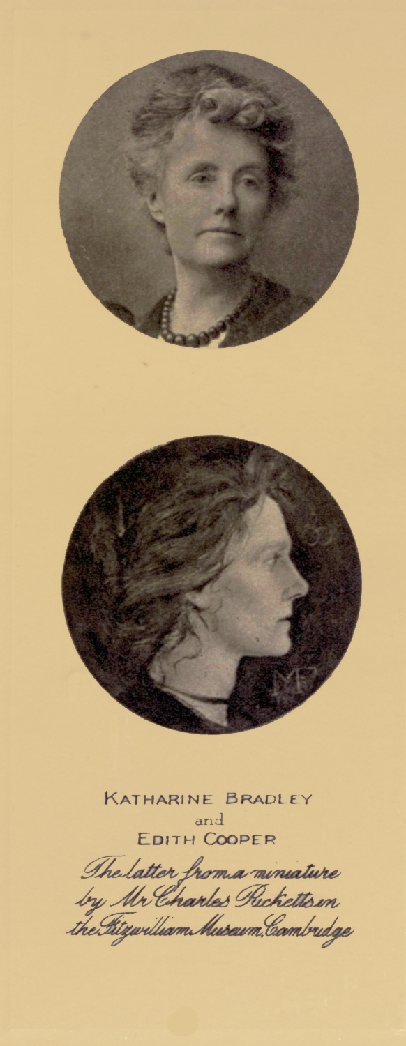 To the courtesy of Mr Sydney C. Cockerell, the Director of the Fitzwilliam Museum, Cambridge, the author owes the copy of Edith Cooper’s portrait. This portrait is a miniature set in a jewelled pendant (both drawing and setting the work of Mr Charles Ricketts) which was bequeathed to the Fitzwilliam Museum on the death of Katharine Bradley.