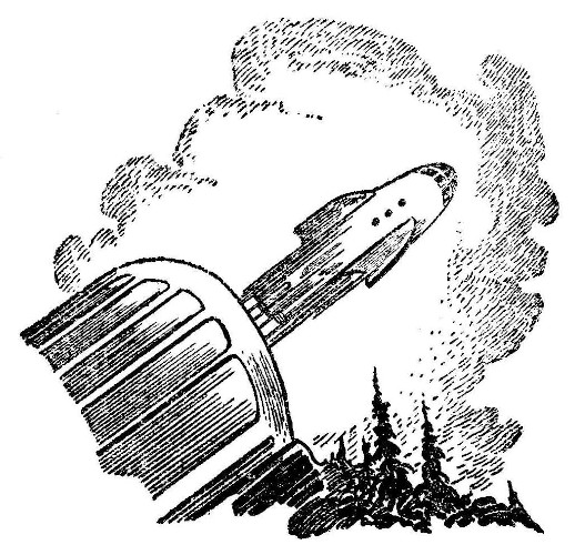 McBride wasted no time. "Al," he said, "you fit the mag-G for vertical bi-lobar field to cover the nose of the crate with the top lobe, and Westy, you see that the mech-G generator in the nose induces the proper vectors in the cupralum bar. I'll get Hank and Jim to touch up the wiring and safety devices. We'll have this crate back in space within the hour!"