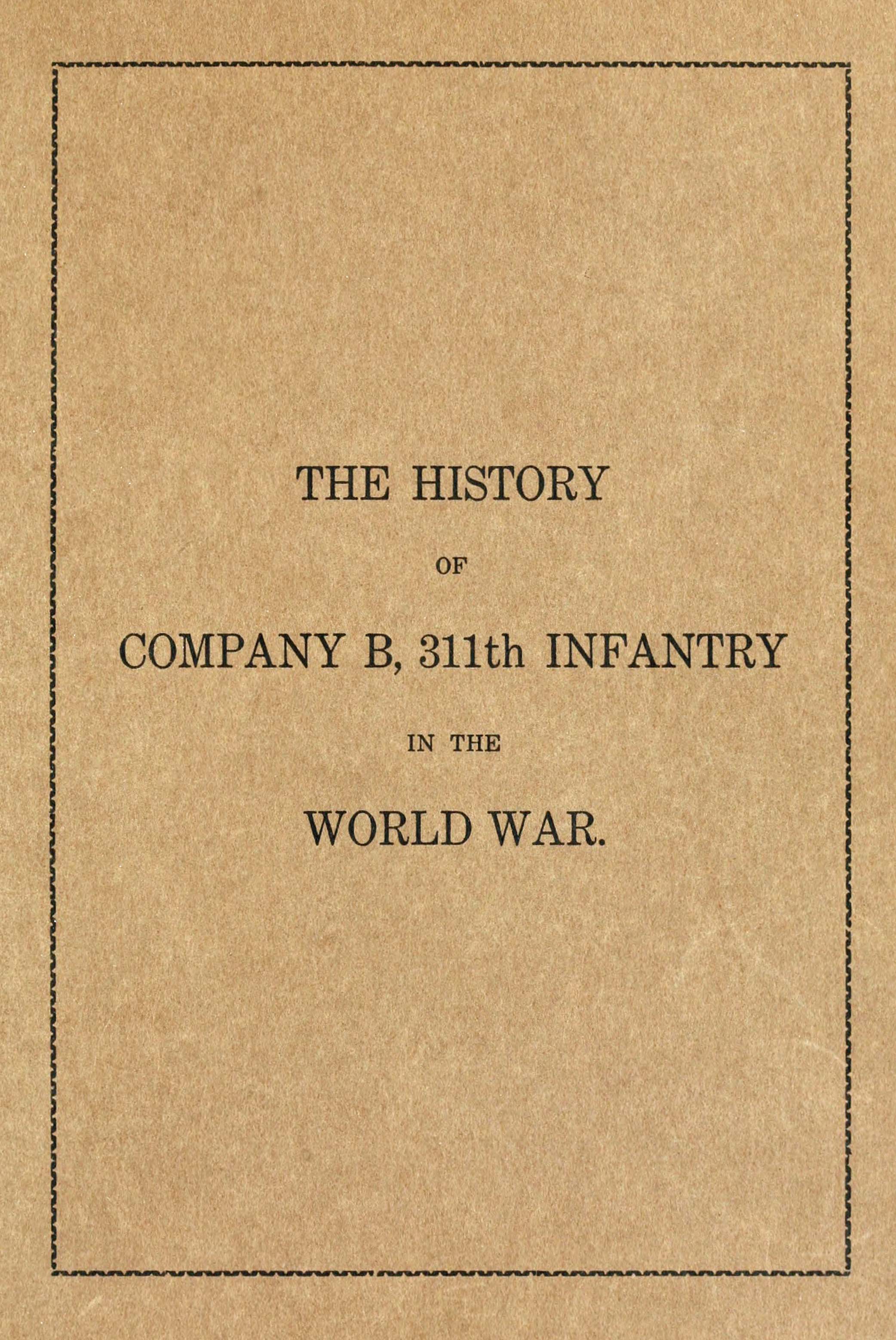 “Company B, 311th Infantry”—Only a letter and a number? Only one company out of the hundreds in the National Army? Yes, to outsiders; but to me, and I trust and believe to you, Company B was a living and vital being, composed of part of what was best in each of us. Its official life was twenty months; in that time it was born, grew to full strength, was trained, travelled some 7500 miles, fulfilled its destiny—fought, suffered, lost; and finally returned to its birthplace and was mustered out. But the spirit of B Company is still with each of us, and not a man but has carried away more than he gave.