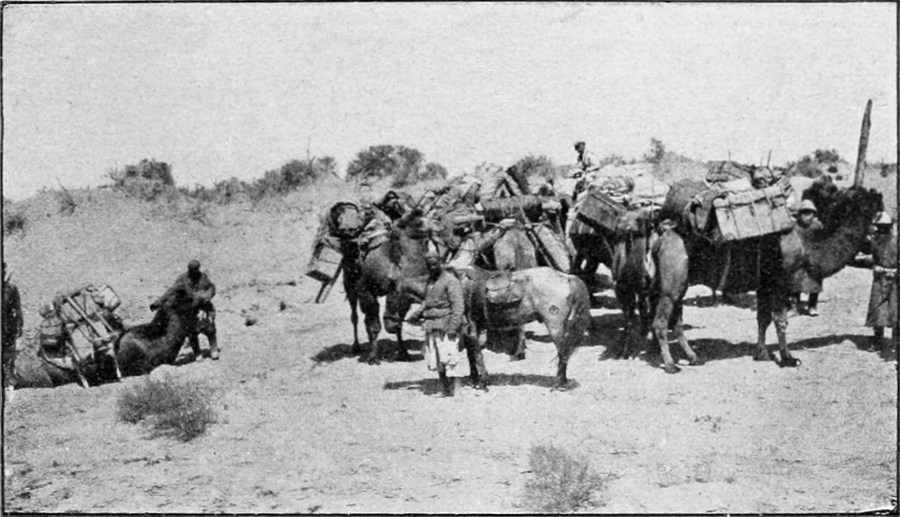 Nach weiteren zwei, der Ruhe, Lektüre und astronomischen Beobachtungen gewidmeten Tagen ritten wir am 18. Oktober fast 50 Kilometer ostwärts über kahle Einöden und Sandgürtel. Unsere Kamele und letzten Pferde wurden unbeladen langsam nachgeführt. Es war sehr behaglich, wieder auf einem großen, fetten, ausgeruhten Pferde zu sitzen, und ich freute mich, daß unsere überlebenden Tiere jetzt über ein halbes Jahr in Frieden weiden und der Ruhe pflegen würden; sie hatten es verdient.