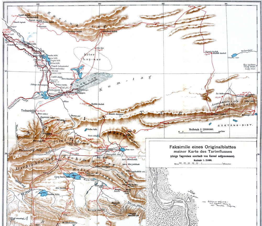Islam hatte 15 fette, starke Pferde, sowie Proviant mit und brachte mir lauter erfreuliche Nachrichten. Der Postdschigit Jakub war aus Kaschgar gekommen, und mit einem Schlage wurde ich durch Brief- und Zeitungspakete meiner Heimat und der Zivilisation wieder ganz nahegerückt. Kurz nach unserem Aufbruch von Mandarlik hatten sie das Lager nach Temirlik verlegt, wo sie sich bei mongolischen Erdhöhlen niedergelassen hatten. Der Amban von Tscharchlik hatte in eigener hoher Person dort einen Besuch abgestattet, ebenso der Mongolenhäuptling Pschui aus Zaidam, aber beide hatten wieder heimkehren müssen, ohne mich zu sehen. Ersterer hatte 30 mit Mais beladene Esel mitgebracht. Seit ein paar Wochen hatten die Daheimgebliebenen unsertwegen in der größten Unruhe geschwebt, da wir versprochen hatten, höchstens 2½ Monate fortzubleiben, und nur für diese Zeit Proviant mit hatten.