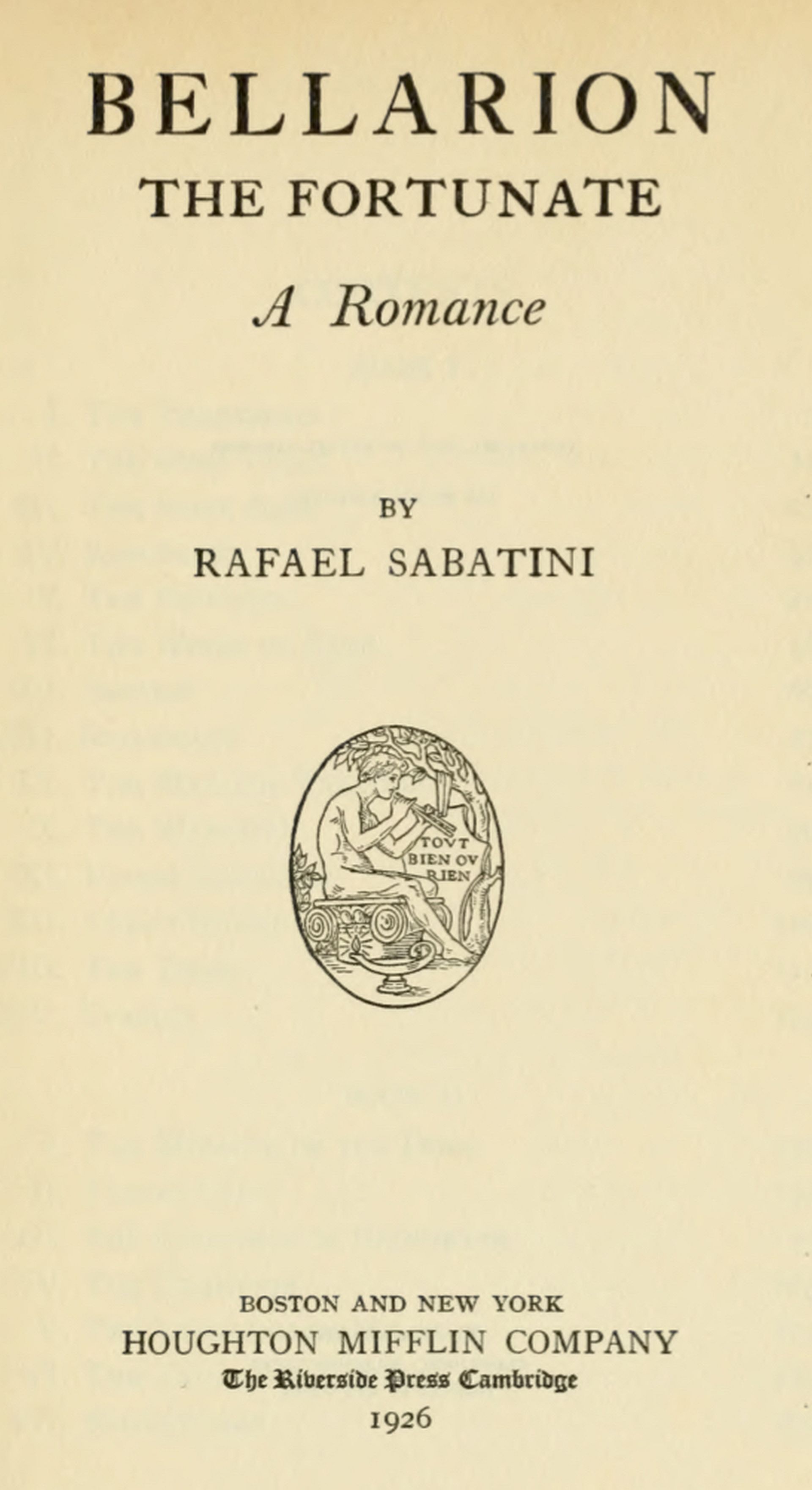 Title: Bellarion the Fortunate: A romance