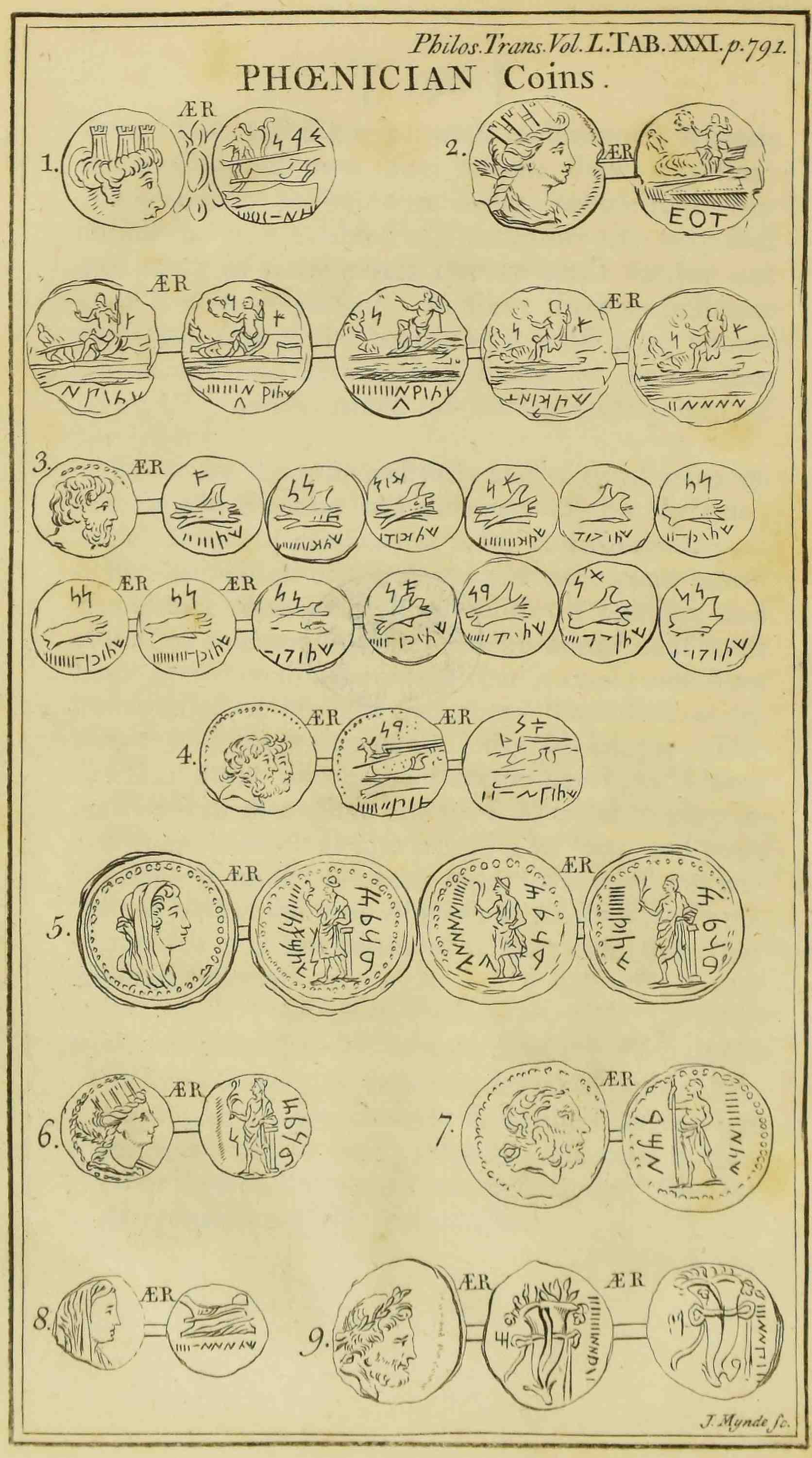 [170] Honor. Arigon. Num. Phœnic. Tab. I. Num. 3, 6. Tarvisii, 1745.
