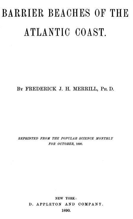 The Project Gutenberg eBook of Barrier beaches of the Atlantic coast, by Frederick J. H. Merrill