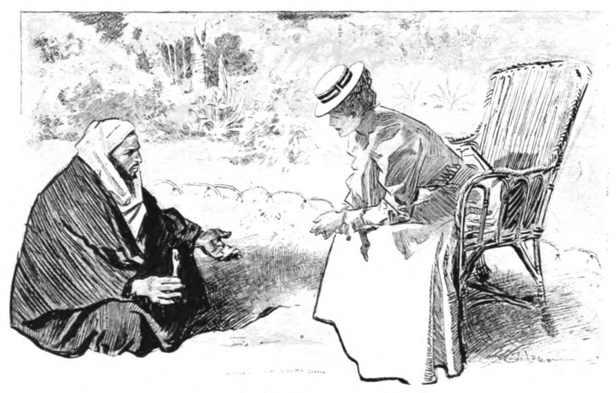 At Shepheard’s there is always the man who has “been there before,” and like the same man at the play, he sits beside you and interprets the picture. You finally promise that you will not go to the monskie without him, and that you will not see the Sphinx by moonlight unless he is there; for if you do, not having been there before, you will be sure to go too early or too late. He says the moon should be at just such an angle and no other. The peddlers in the monskie know him, and while they entertain him with little cups of sweet tea they complain that they have had no luck since they last saw him, and they ask eagerly after that gentleman he brought to them the year before—the gentleman who had such exquisite taste and backed it up so generously with his money. And you drink their tea, and feel, as you leave the shops, after having only looked at their things, that they will never ask affectionately after you. The man who has been{108} there before generally walks in front of you, as if he were not as anxious to have you see the place as he is to have you see that he knows his way about; and, after all, it is no small thing to be proud of. If I ever go to the mouskie again, I shall pity the greenhorn who happens to be with me.