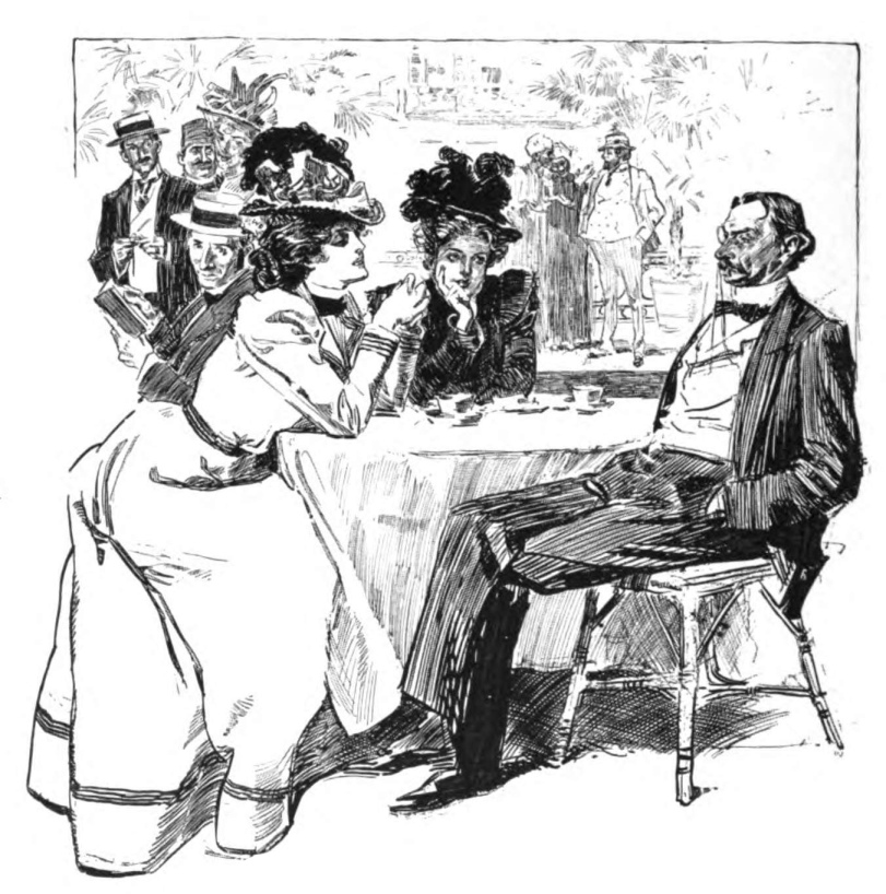 At Shepheard’s people put aside their guide-books for a while. It is a play that requires no libretto. On the crowded piazza overlooking the street, London shopkeepers and foreign noblemen elbow each other, and all celebrities look very much alike.