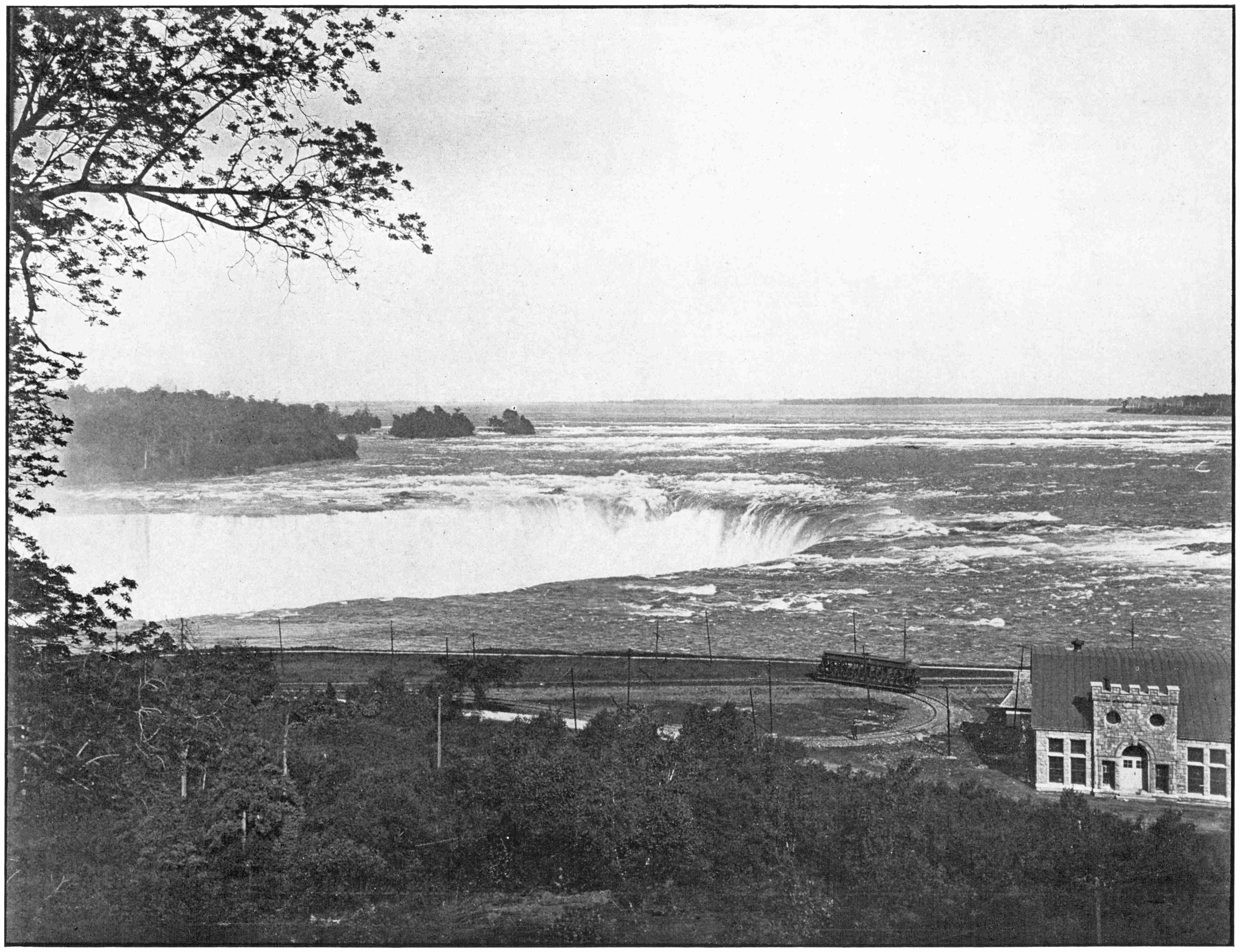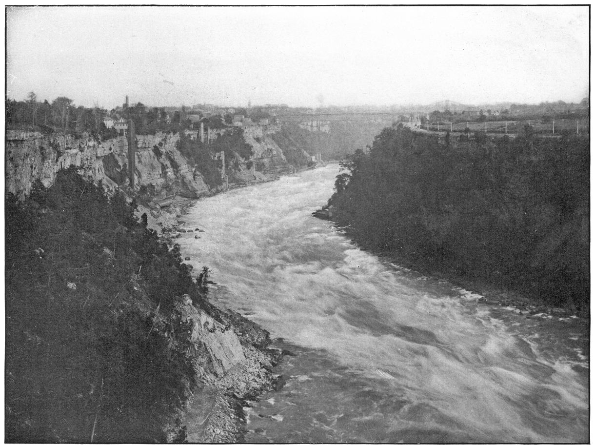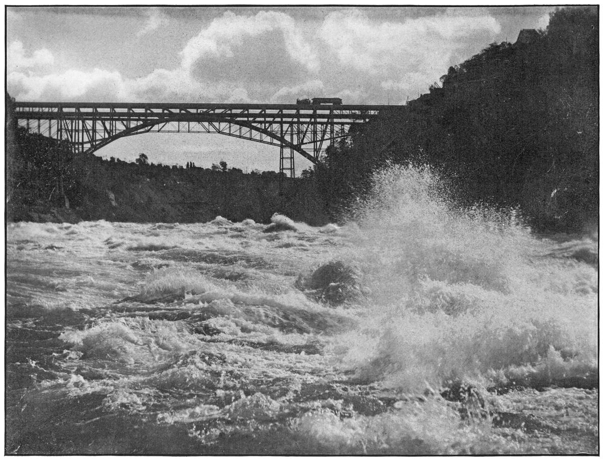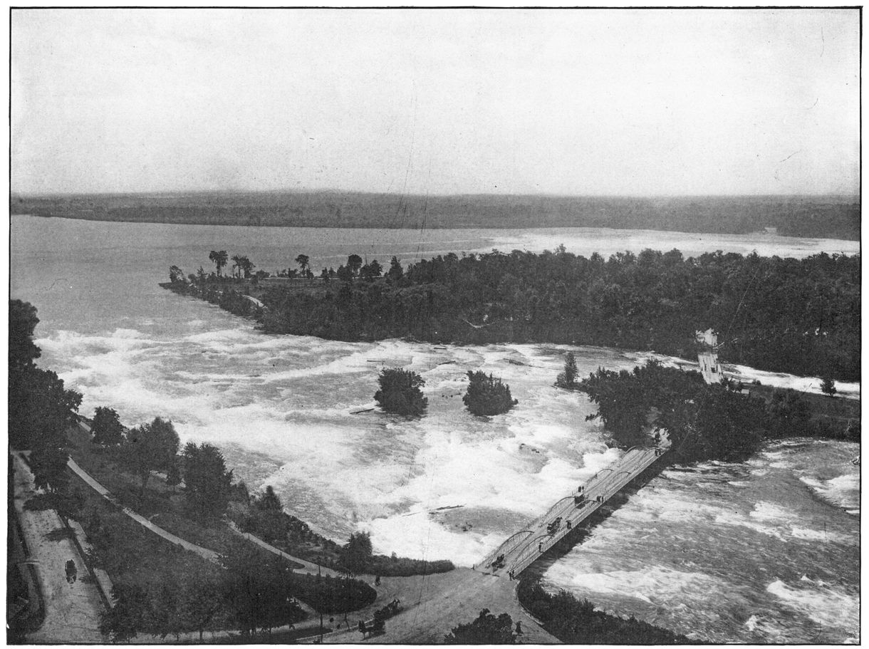 This is one of the grand views to be had from the Canadian side of the river. The rapids, by their great descent and vastness, convey an impressive effect to the mind, and, together with the Falls and scenery of Victoria Park, combines to make one of the most pleasing pictures about Niagara. The entire length of the park is traversed by the electric cars, which are so great a convenience about Niagara, for tourists.