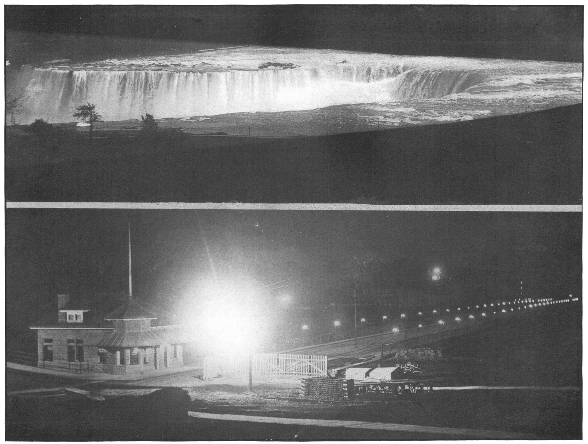This photographic masterpiece, the crest of the Horseshoe Fall by searchlight, taken from Falls View, is the only one of its kind ever made. “The scene is entrancing as the searchlight kisses the water into new beauty.”