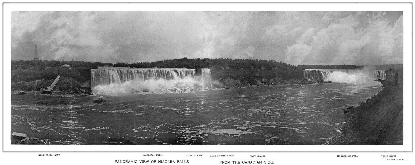 PANORAMIC VIEW OF NIAGARA FALLS FROM THE CANADIAN SIDE.