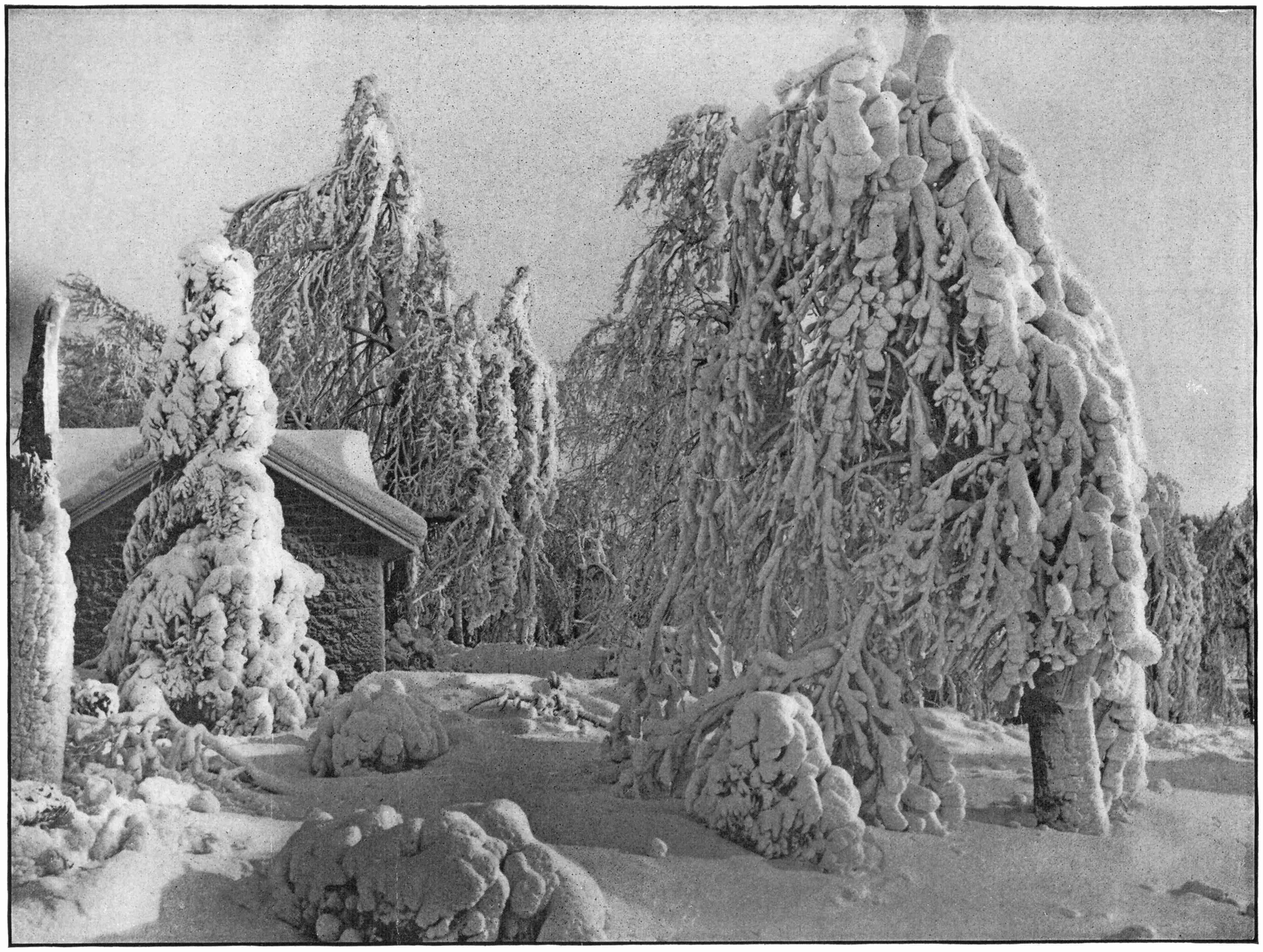 In winter the high winds which prevail, sometimes for days at a time, catch the spray from the American Fall and carry it far back into the forest growth, the trees become ice-laden, and the transformation that takes place is beautiful in the extreme.