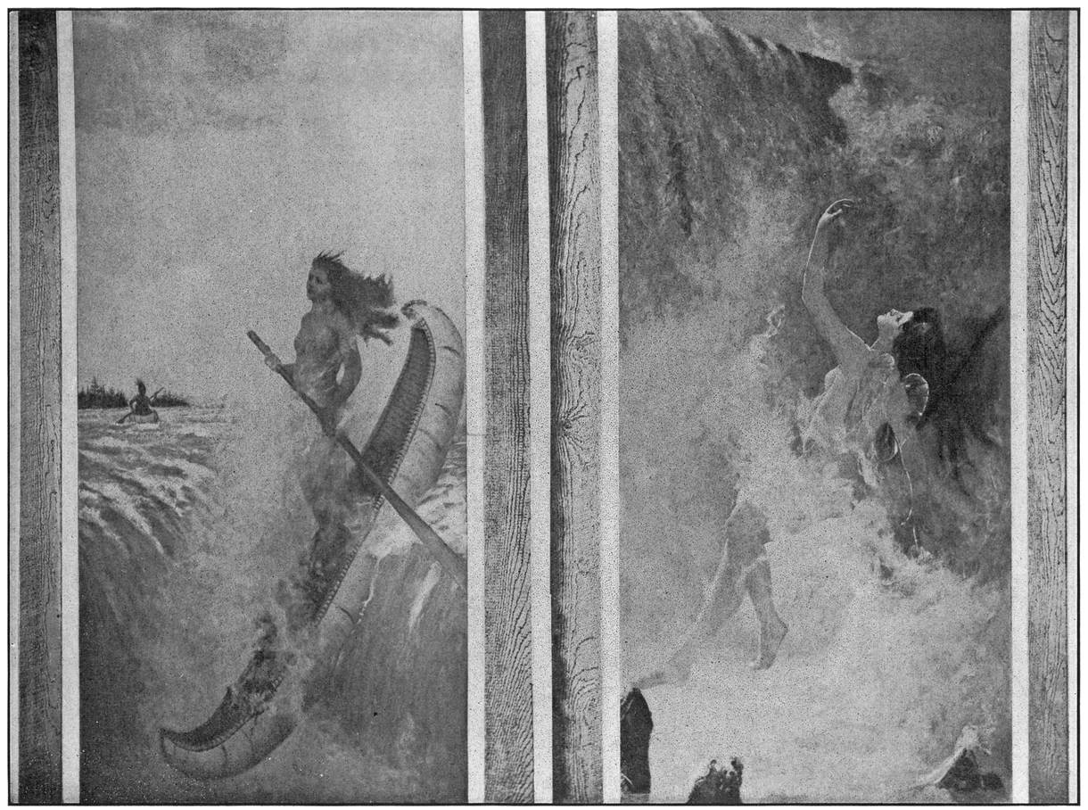 To the Indians the thundering of the water was the voice of the Great Spirit; the spray-cloud his habitation. A portion of the crops and spoils of the chase were annually offered as tokens, and the fairest maiden of a tribe was sacrificed by being sent over the falls in a canoe laden with fruits and flowers.