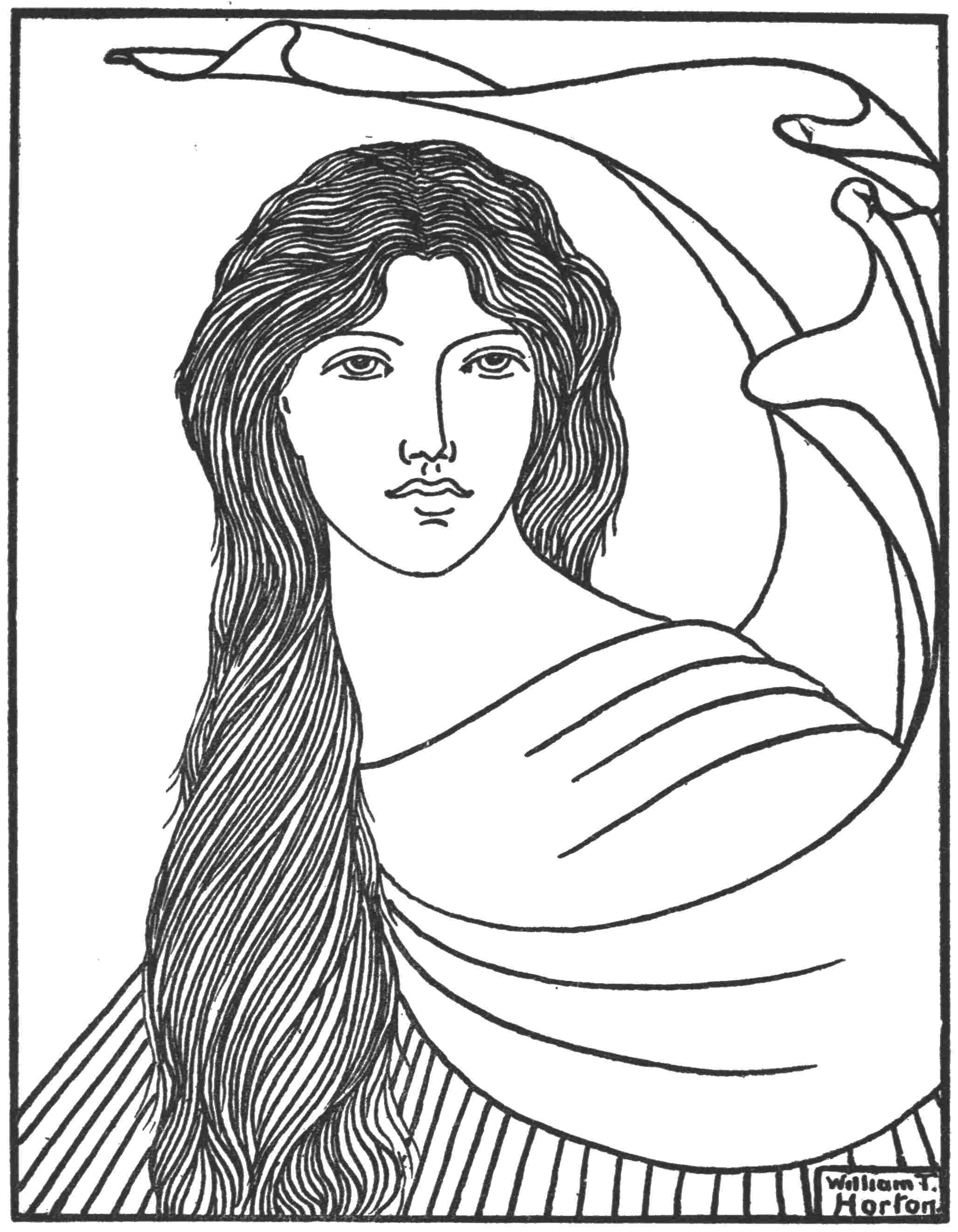 3. Mr. Horton, who is a disciple of “The Brotherhood of the New Life,” which finds the way to God in waking dreams, has his waking dreams, but more detailed and vivid than mine; and copies them in his drawings as if they were models posed for him by some unearthly master. A disciple of perhaps the most mediæval movement in modern mysticism, he has delighted in picturing the streets of mediæval German towns, and the castles of mediæval romances; and, at moments, as in All Thy waves are gone over me, the images of a kind of humorous piety like that of the mediæval miracle-plays and moralities. Always interesting when he pictures the principal symbols of his faith, the woman of Rosa Mystica and Ascending into Heaven, who is the Divine womanhood, the man-at-arms of St. George and Be Strong, who is the Divine manhood, he is at his best in picturing the Magi, who are the wisdom of the world, uplifting their thuribles before the Christ, who is the union of the Divine manhood and the Divine womanhood. The rays of the halo, the great beams of the manger, the rich ornament of the thuribles and of the cloaks, make up a pattern where the homeliness come of his pity mixes with an elaborateness come of his adoration. Even the phantastic landscapes, the entangled chimneys against15 a white sky, the dark valley with its little points of light, the cloudy and fragile towns and churches, are part of the history of a soul; for Mr. Horton tells me that he has made them spectral, to make himself feel all things but a waking dream; and whenever spiritual purpose mixes with artistic purpose, and not to its injury, it gives it a new sincerity, a new simplicity. He tried at first to copy his models in colour, and with little mastery over colour when even great mastery would not have helped him, and very literally: but soon found that you could only represent a world where nothing is still for a moment, and where colours have odours and odours musical notes, by formal and conventional images, midway between the scenery and persons of common life, and the geometrical emblems on mediæval talismans. His images are still few, though they are becoming more plentiful, and will probably be always but few; for he who is content to copy common life need never repeat an image, because his eyes show him always changing scenes, and none that cannot be copied; but there must always be a certain monotony in the work of the Symbolist, who can only make symbols out of the things that he loves. Rossetti and Botticelli have put the same face into a number of pictures; M. Maeterlinck has put a mysterious comer, and a lighthouse, and a well in a wood into several plays; and Mr. Horton has repeated again and again the woman of Rosa Mystica, and the man-at-arms of Be Strong; and has put the crooked way of The16 Path to the Moon, “the straight and narrow way” into St. George, and an old drawing in The Savoy; the abyss of The Gap, the abyss which is always under all things, into drawings that are not in this book; and the wave of The Wave, which is God’s overshadowing love, into All Thy waves are gone over me.
