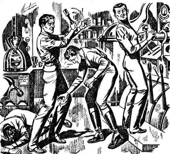 "Quick thinking, Doug!" Kincaid approved warmly. "Can't let reactionaries obstruc' course of scientific progress. We'd better tie 'em up in case they come around too soon."