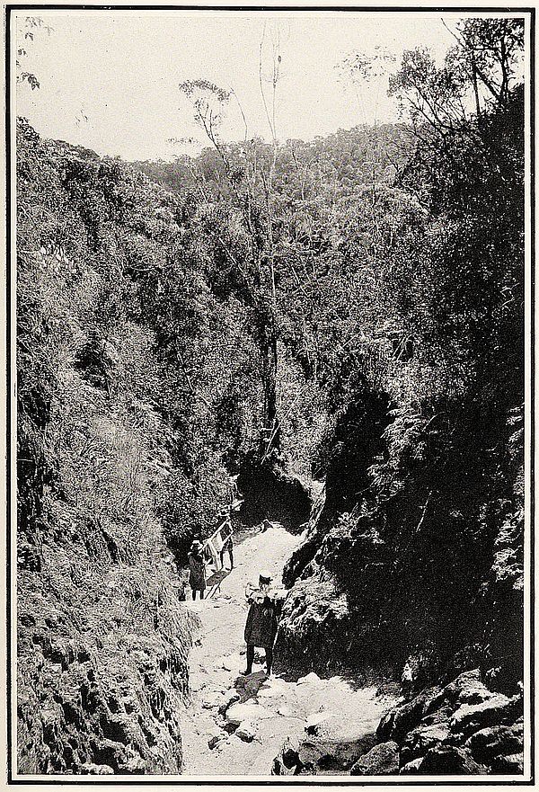 The following morning we were up early, but the mòkafòhy were up before us and made it a misery to do anything immediately we emerged from the tent. Getting breakfast was therefore disposed of in a very short space of time, for mouth, nostrils, and eyes got full of these detestable little flies; one could not eat, and we hurried the children into their palanquins and got off as fast as was possible. The name of this pretty valley (Màrokalòy = “Many alòy”) ought to have warned us, as alòy is the proper name of the insect, and this place seems to be their head-quarters. The scenery and the route continued to[291] be as pleasant and as easy as before; every hollow was filled with vegetation of a tropical character, and streams of bright water crossed our path every few hundred yards.