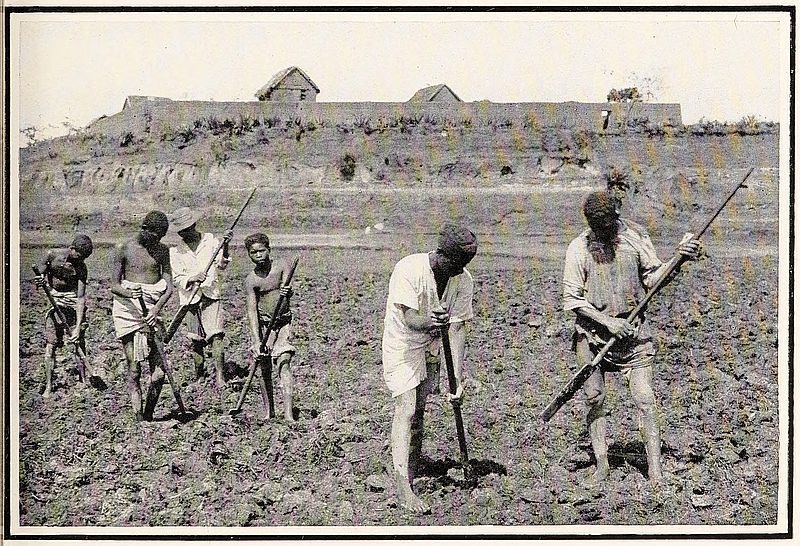 We left Antanànarìvo on Thursday afternoon, 13th September, a large number of our missionary friends accompanying us for a distance out of the city, in fact as far as the banks of the Ikòpa, along which our route lay for several miles. Here one could not but be again impressed with the importance of these river banks in preserving the rice-fields from being flooded, and by the good work done by the old kings of Imèrina in embanking the river and thus turning marsh and bog into fruitful fields. Stopping at the L.M.S. mission station of Ambòhidratrìmo for the first night of our journey, we reached the station of Fihàonana in Vònizòngo on the second day, putting up at the manse, although the minister (Rev. T. T. Matthews) and his family were away from home. A short half-day’s ride brought us to a third mission station, that at Fierènana, where we had a Sunday’s rest before setting out on the unknown and principal portion of our journey. We stayed in the house which, a year or two before then, I had marked out for our friends, and recalled how I had taught Mrs Stribling to lay bricks, to bond together the corners of the walls, to manage the chimney breasts, etc., so that she became quite proficient and was able to teach the native workmen bricklaying, which was then to them an unknown art.