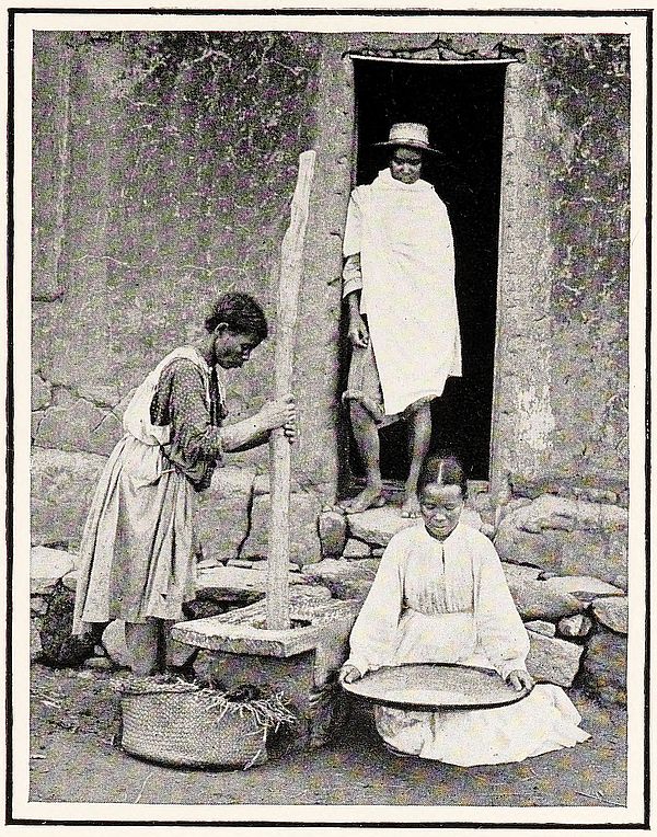 We had not got far on our way the following day before making acquaintance with the mòkafòhy, an insect about half the size of a housefly, but with wings less divergent. They have a large proboscis and give a distinct prick, sometimes drawing blood, and with after-irritating effects like mosquito bites. They are more sluggish than mosquitoes and so can be more easily killed, and with a small whisk of leaves it is not very difficult to ward them off. The road was still along a[289] valley with precipitous hills on our left, and perpendicular faces of rock. All along were clumps of adàbo-trees, making the scenery much like an English park. We noticed a large number of earthen mounds, often two and a half feet high; these were the nests of a large ant, which, like those we met on the eastern side of the island, is said to kill a serpent which makes its home in the lower part of the ant-hill. The native travellers often use these mounds as a fireplace for cooking their rice, by knocking off the top, scooping out the centre, and making a hole near the bottom for draught.