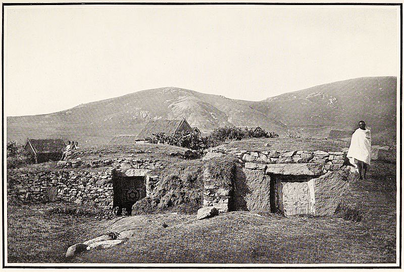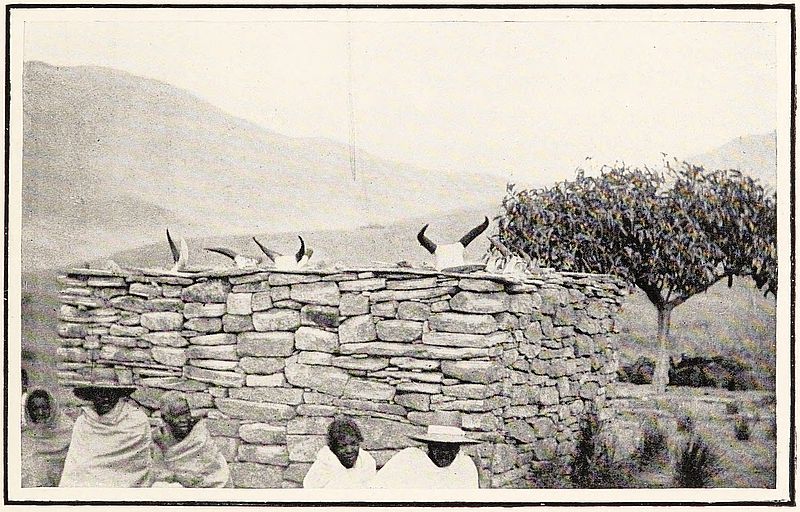 We noticed again the peculiar tombs of the Bétsiléo; these, which consist of a large square of stones, are not, as in Imèrina, the real burial-places; for the actual tomb is often twenty feet below the ground, a stone chamber, to which access is gained by a long inclined passage opening out at a distance of eighty or a hundred feet from the tomb.