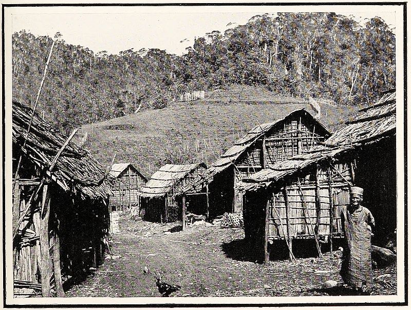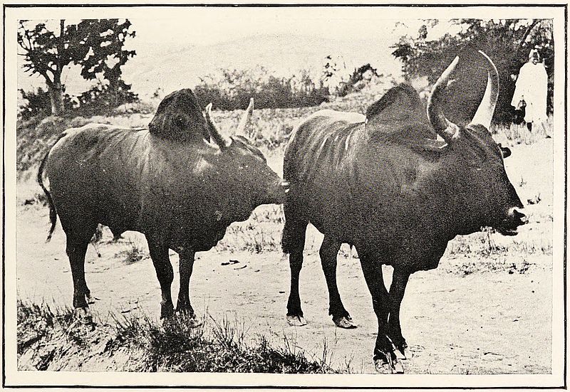 Outside this village the following morning we passed a shoe—or[287] rather sandal—market, with scores of pairs of rough bullock-hide sandals for sale. I noticed also that everyone we passed carried a pair fastened to his or her burdens. Although we had to go up and, of course, down again, a long ascent, the route was less difficult and fatiguing than are those we often traversed in Imèrina, and far less so than the roads to the eastern coast through the forest. The increasing temperature told us that we were getting to a lower level; indeed all the western side of Madagascar is hotter than the eastern side, as it is deprived of the cool south-east trade-wind from the Indian Ocean. At the village where we stopped for the night, all the dwelling-houses were made of the gigantic bamboo-like grass called bàraràta, although the school church which served us for a lodging was of clay. The place had a double entrance gateway, one of them being a low narrow tunnel; and like most of these villages had a great quantity of cattle brought into it, for security every evening. In consequence, the whole place was covered with a foot or two of manure; and it was here that our friend, Mr Grainge, stopping for the night the previous year, had an experience which I will give in his own words.