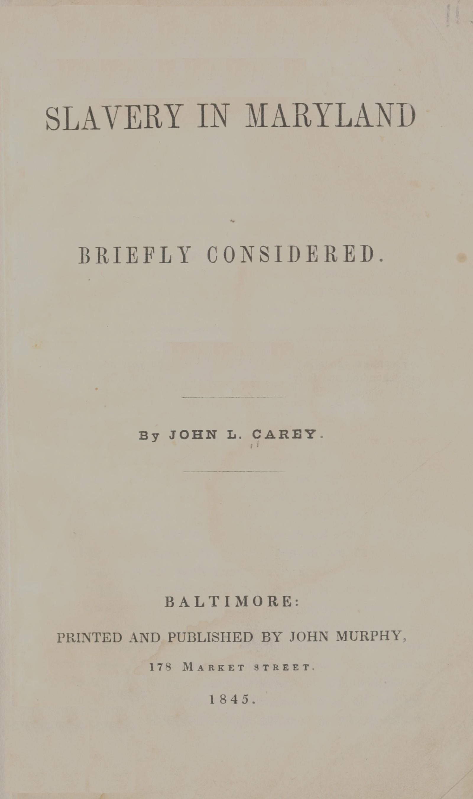 The Project Gutenberg eBook of Slavery in Maryland briefly considered, by John L. Carey