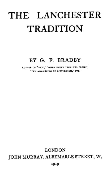 In connection with the school tradition it should, perhaps, be mentioned that there is a life of the great man by a friend and contemporary, and that there is nothing in it to suggest that Dr. Lanchester was so acutely sensitive to change. He seems, indeed, to have impressed his biographer as a restless spirit, with new and rather daring ideas about education. Bound in the school colours and stamped with the school crest, this volume is frequently given as a prize, and figures on many a Chiltern bookshelf. But it is seldom read, except by Germans and Nonconformist ministers; for it is ponderously written, and Chiltern is more concerned with the memory than with the life of its great headmaster. In fact, the tradition is an oral rather than a written tradition, and it is perpetually[9] renewed. Chiltern claims to receive a continuous stream of inspiration from its second founder; and the current of the stream runs strongly against change.