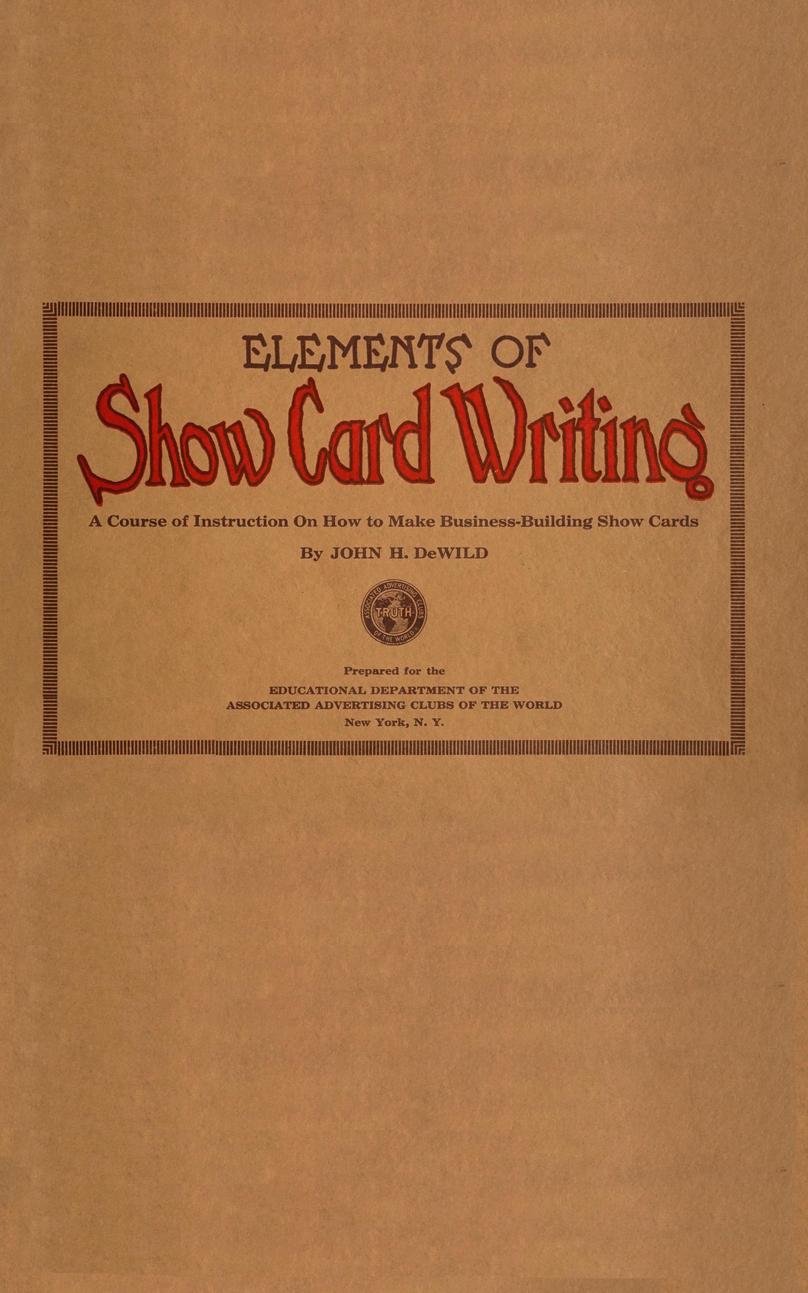 It is with pleasure that we present this text on Show Card Writing by Mr. John H. DeWild of St. Louis.