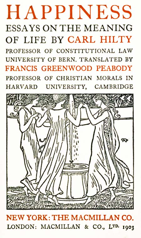 Great numbers of thoughtful people are just now much perplexed to know what to make of the facts of life, and are looking about them for some reasonable interpretation of the modern world. They cannot abandon the work of the world, but they are conscious that they have not learned the art of work. They have to fight the battle of life, but they are not sure what weapons are fit for that battle. They are so beset by the cares of living that they have no time for life itself. They observe that happiness often eludes those who most eagerly pursue it; and that the meaning of life is often hidden from those whose way would seem to be most free. To this state of mind—hesitating, restless, and dissatisfied, in the world but not content to be of the world—the reflections of Professor Hilty, as published in Switzerland and Germany, have already brought much reassurance and composure; and their message seems hardly less applicable to English and American life. Here also the fever of commercialism threatens the vitality of idealism, and here also the art of life is lost in the pace of living. Religion to a great many educated people still seems, as Bishop Butler wrote in 1736, “not so much as a subject of inquiry.[vi] This seems agreed among persons of discernment”; and a book about religion might still begin with the words which Schleiermacher wrote in 1806: “It may well surprise the wise men of this age that any one should still venture to ask their attention for a subject which they have so wholly abandoned.” And yet, in regions of experience which no one fails sooner or later to enter,—regions of great joy and sorrow, experiences of serious duty and bewildering doubts of the meaning of life,—many a mind that has seemed to itself to have outgrown religion looks about for a religion that is real. Such a mind will not be satisfied with a left-over faith; it will not be tempted by an ecclesiastical omniscience. It demands sanity, reserve, wisdom, and insight, a competent witness of the things of the Spirit. This is the state of mind to which this little book is addressed. The author makes his appeal not to discussion, but to life. He reports the story of a rational experience. He walks with confidence because he knows the way. He accepts the saying of Pico della Mirandola: “Philosophia veritatem quaerit, ... religio possidet.” Let us take life, he says, just as it is and must be, and observe that the doors which lead into its inner meaning open only to the key of a reasonable faith.