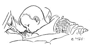 In einer Oktobernacht, nachdem ich eine Stunde geschlafen hatte, wurd’ ich um eins geweckt, und Karin sagte mit einem leidenden Lächeln: „Mein armer Junge, ich hätte es Dir so gern gegönnt, etwas zu schlafen, aber Du wirst wohl Madame Chose holen müssen“.