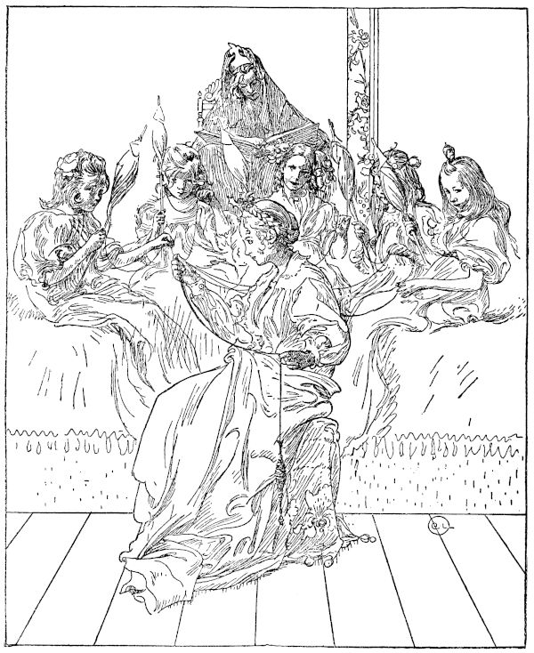 Die wunderbarsten Akkorde ertönen, die diese Gestalten bald zum Lächeln, bald zum Weinen bringen. Mitten in dieser Glückseligkeit sehen wir sie zu uns herabsinken und ihre Blicke fragen: „Woher? Daher? Wir waren so grenzenlos unglücklich dort, wo nur Haß und Bosheit regieren! Oder zehrende Langeweile! Und ihr, ihr lächelt das Lächeln der Seligen?“