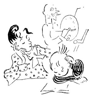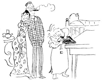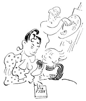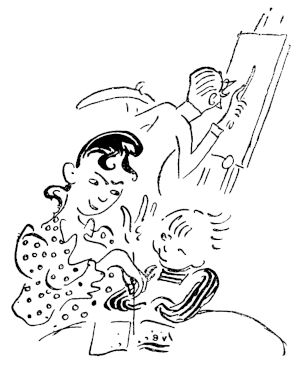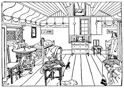 Wenn die Kinder im Bett waren und die Dienstmädchen sich auf ihr Kämmerchen neben der Waschküche verzogen hatten, pflegten Karin und ich uns im Eßzimmer besonders wohl zu fühlen. Ich las ihr etwas vor, während sie die Löcher und Risse flickte, die im Laufe des Tages in den verschiedenen Kleidungsstücken der Gören entstanden waren. Jetzt, seitdem ich ein gar zu unwohnliches Garderobenzimmer zu einer Art Atelier umgemodelt habe, sitzen wir meistens dort. Es liegt in einer Reihe mit den beiden Schlafzimmern, und von da aus kann Karin ihre Kleinen hören, wenn sie aufwachen und eines beruhigenden Wortes, eines Kusses oder einer Abreibung bedürfen, sofern ihnen zu heiß ist, um einschlafen zu können.