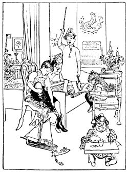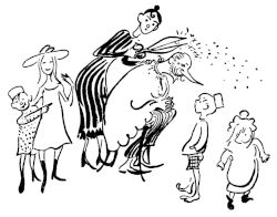 All’ diese Herrlichkeit wird zunächst von den alten Männern und den Gören in Augenschein genommen. Dann erscheinen Johann, Johanna und Sanna, alle drei kerzengrade und mit feierlichem Ausdruck. Aber Johann trägt seine Geige unter dem Arm, und Johanna hat einen ganz, ganz kleinen Schelmenblick im Auge.