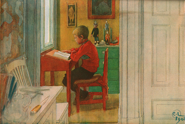 Gerade am Heiligabend, und gerade hier in Sundborn will ich diesen Text zu den Bildern aus meinem lieben Heim in Dalekarlien beginnen. Ich denke dadurch etwas Weihnachtsstimmung hereinzubekommen und Dich, lieber Leser und Beschauer, in Deiner frohesten Stimmung anzutreffen. Um es so wagen zu können, Dich für mich und das Meine zu interessieren.